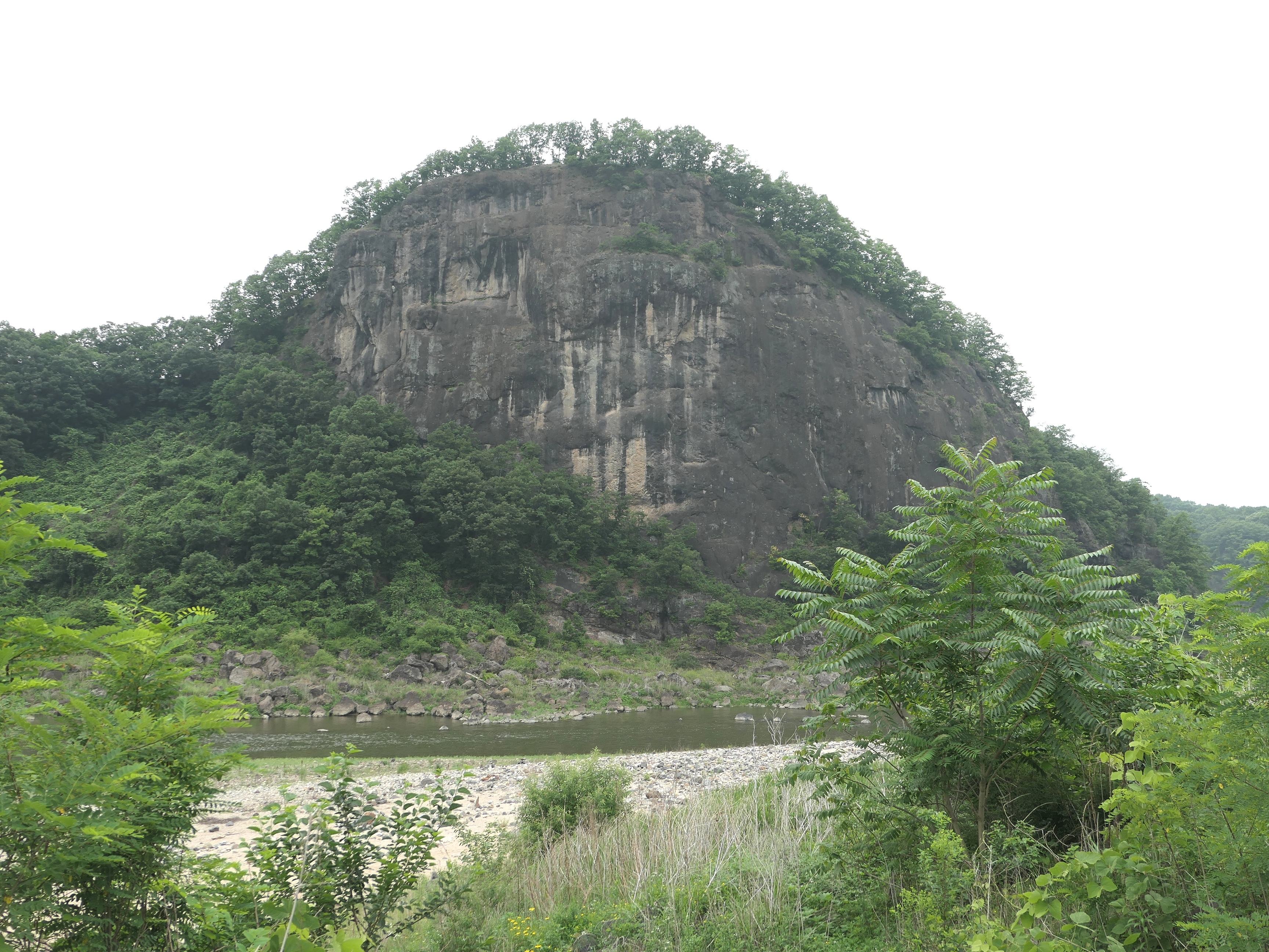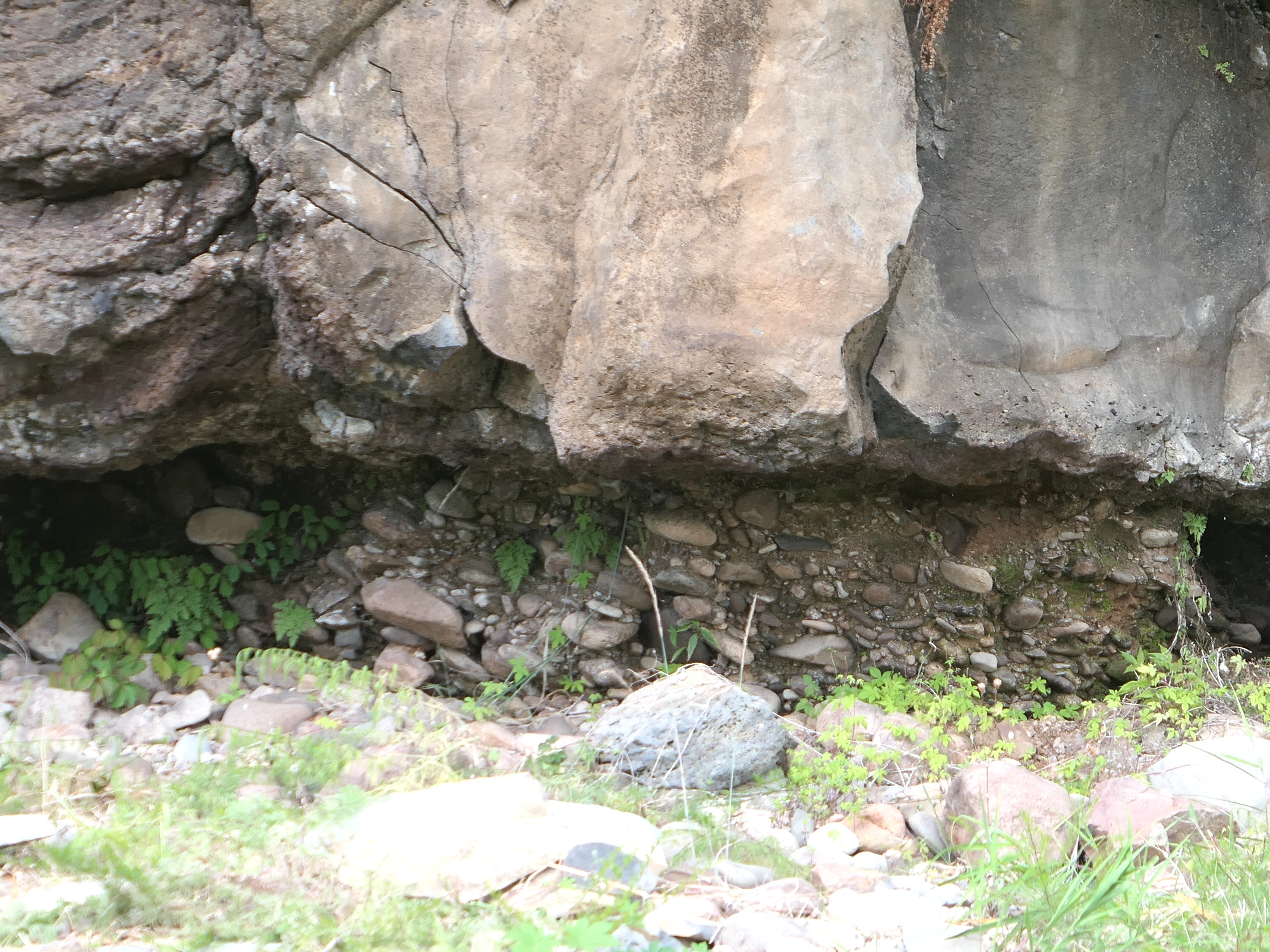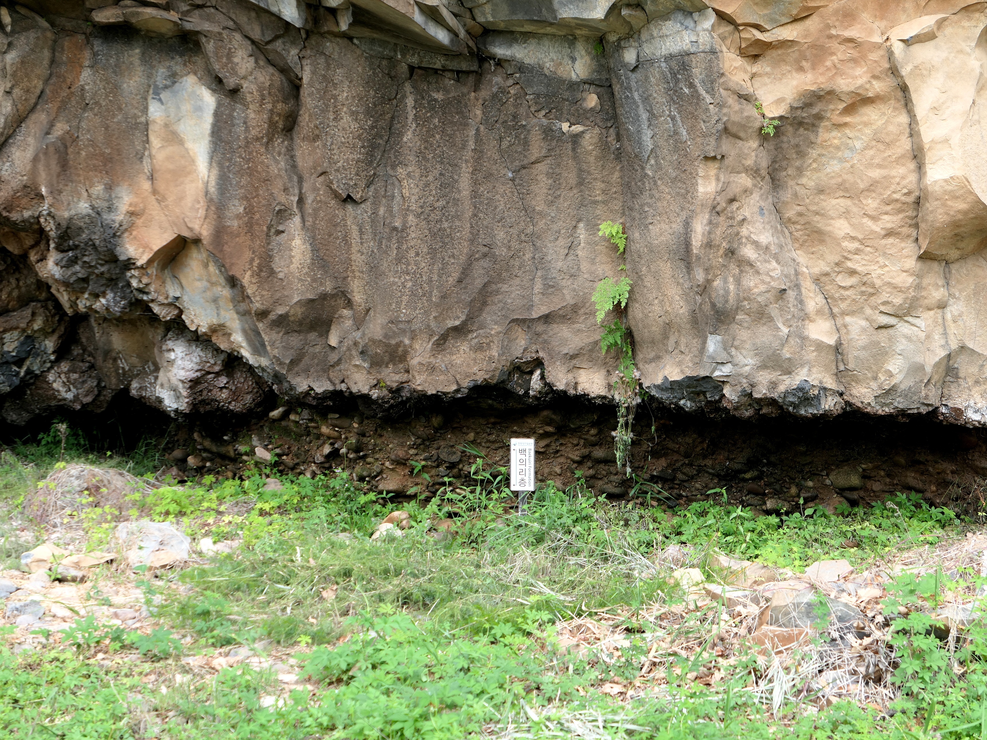 화강암 맨 아래 층에 화산활동 이전에 있었던 강바닥의 모래와 자갈을 볼 수 있다.
