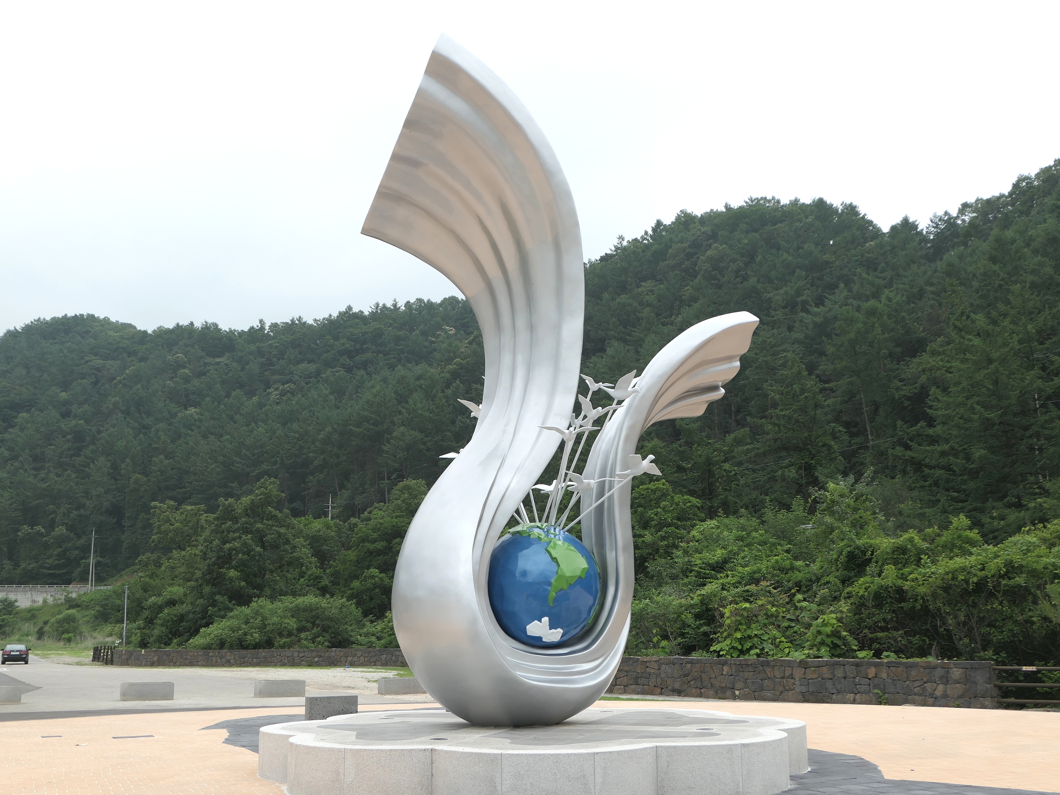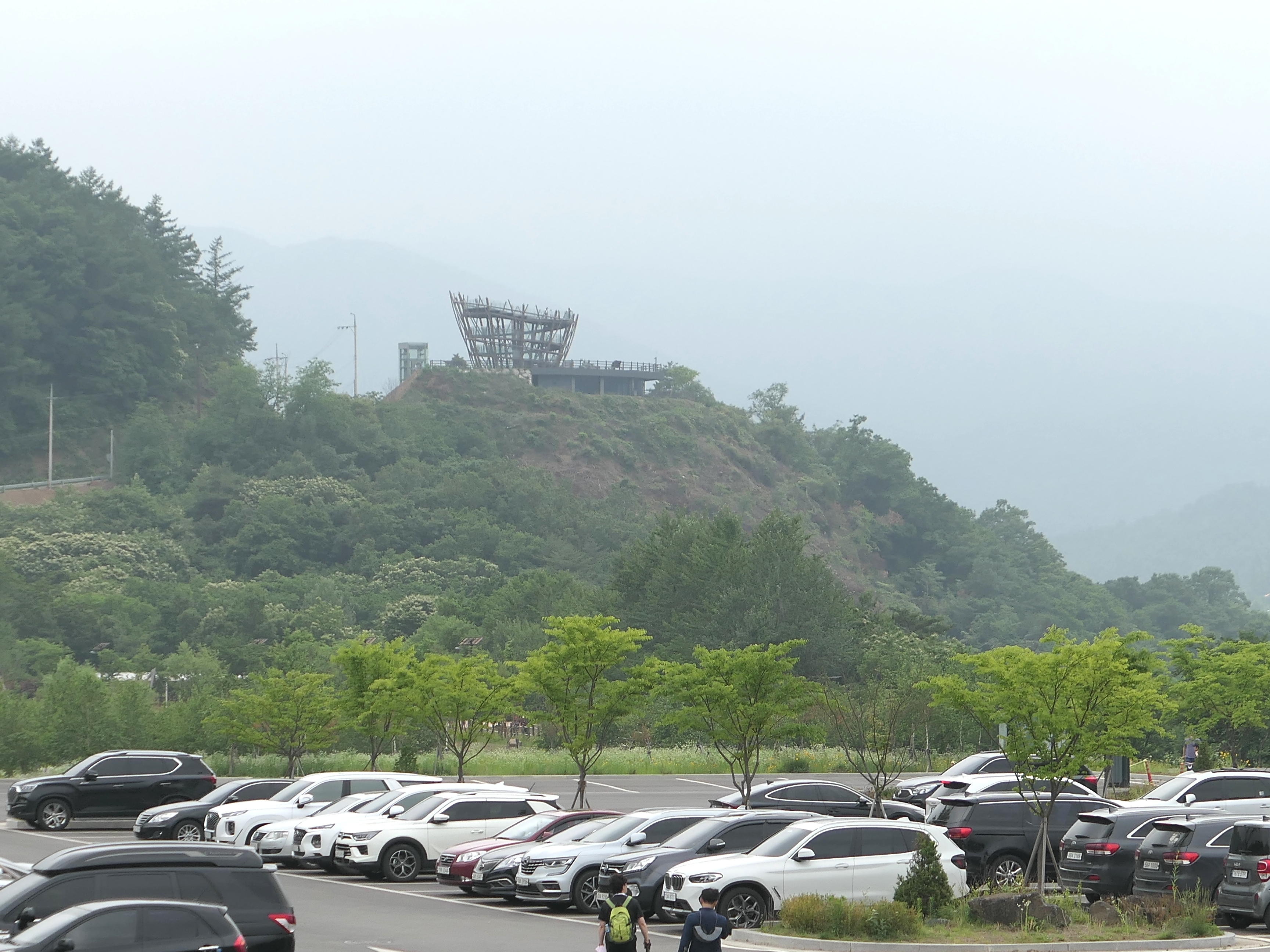 즈차장 사이의 도로 반대쪽 산위에는 전망대 공사가 진행되고 있다.