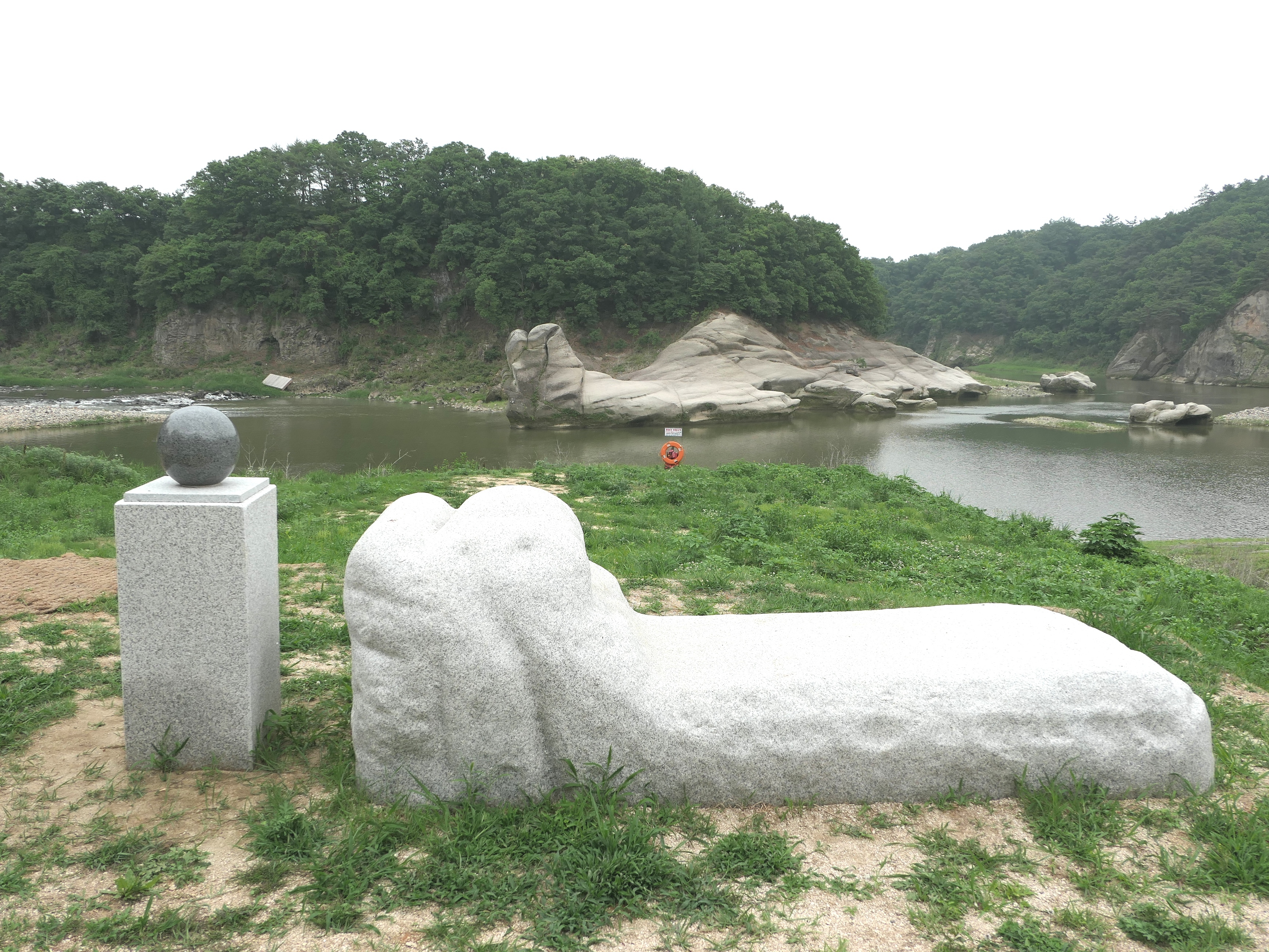좌상바위에서 1km정도 상류쪽에 아우라지베개용암을 만난다.