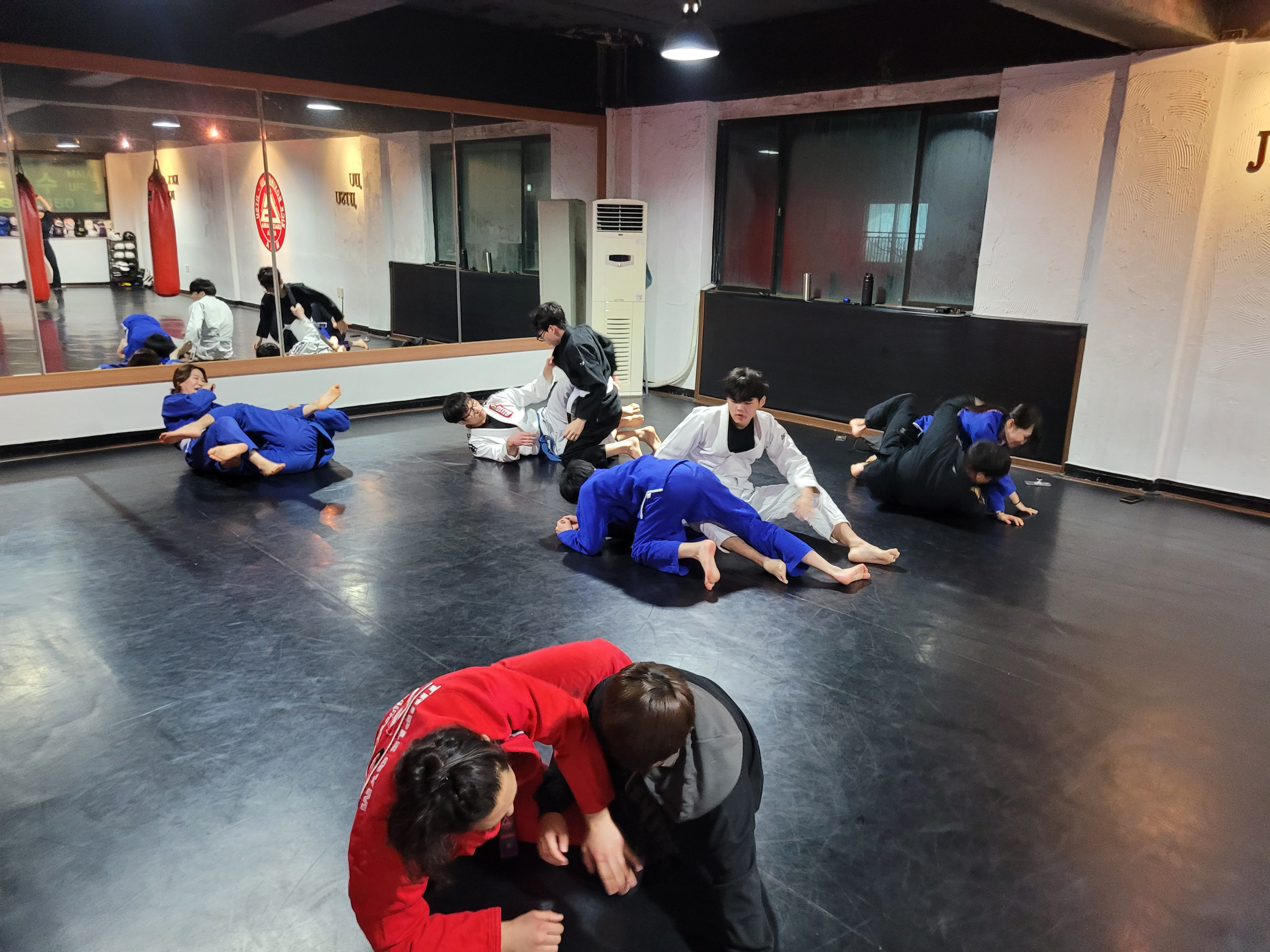 주짓수는 넘어뜨리는 기술도 배우고, 누워있는 상태에서 상대를 제압하는 방법도 배우는 무술입니다!!