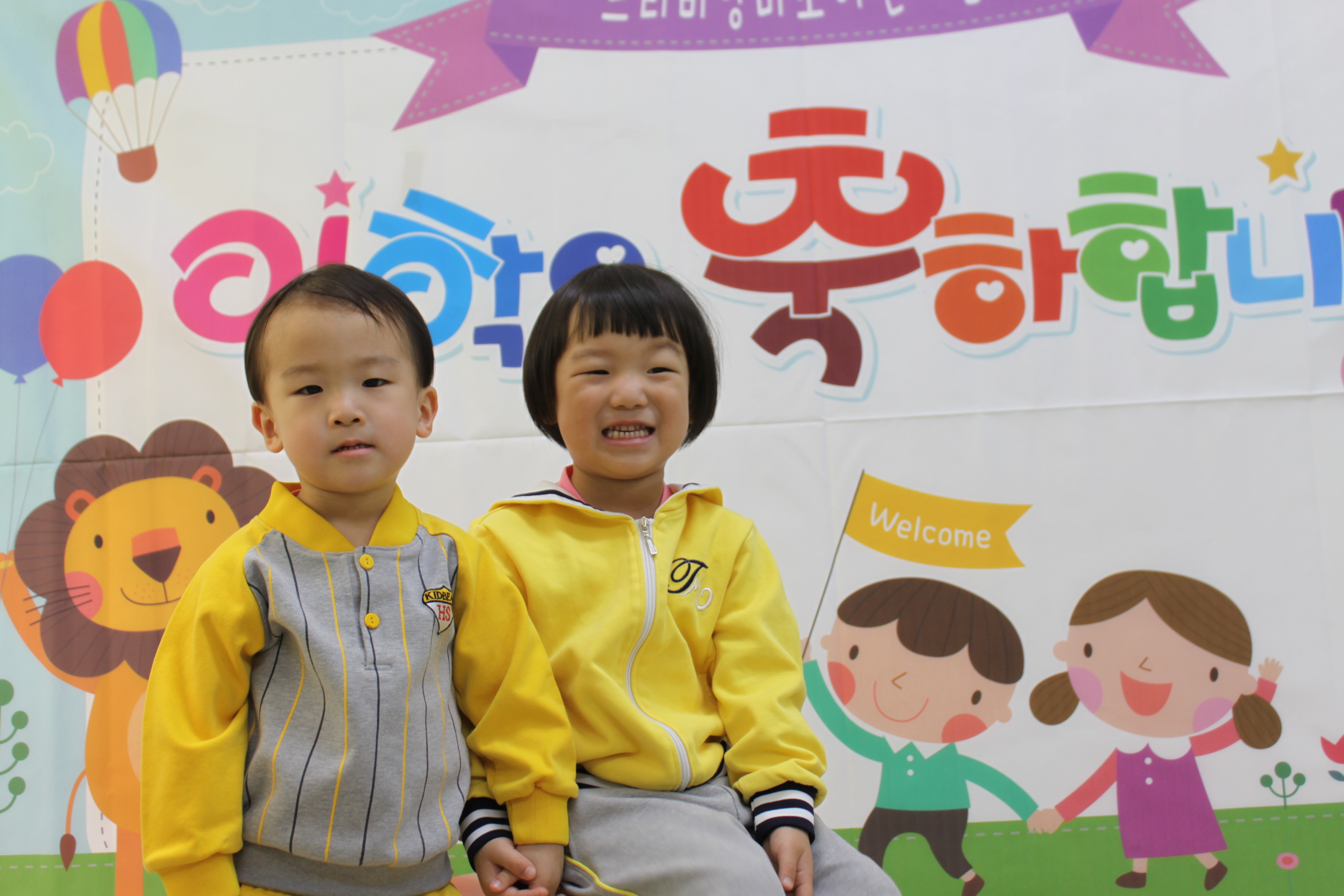 아이들이 새 학기에 첫 등원을 하고 난 뒤 입학 사진을 찍지만,