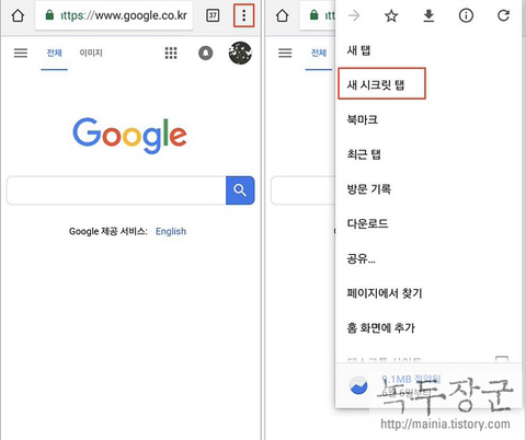 크롬 앱에서 시크릿모드 전환방법 (사진)🔻