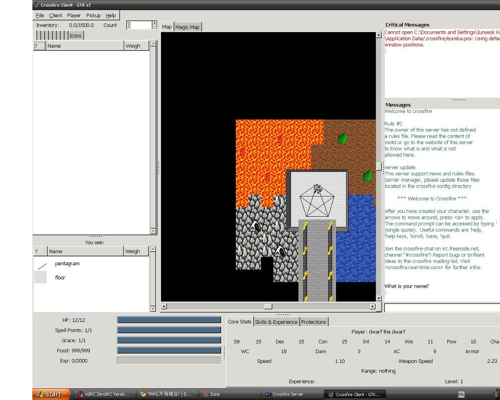 여기서 중요한건, 메시지 (Message)창에 나오는 말들입니다. "What is your name?" 이름이 뭐냐고 물어보는군요.