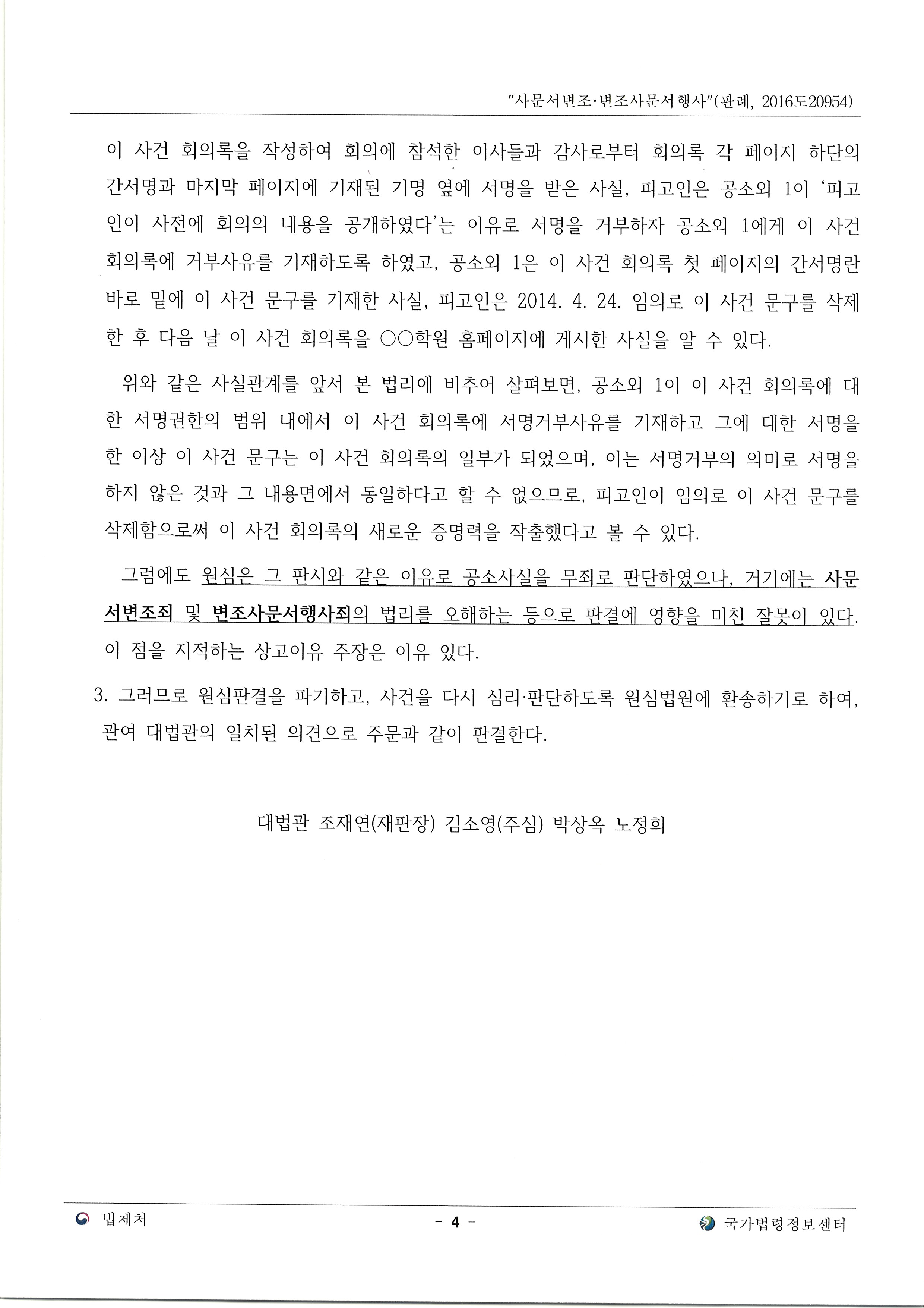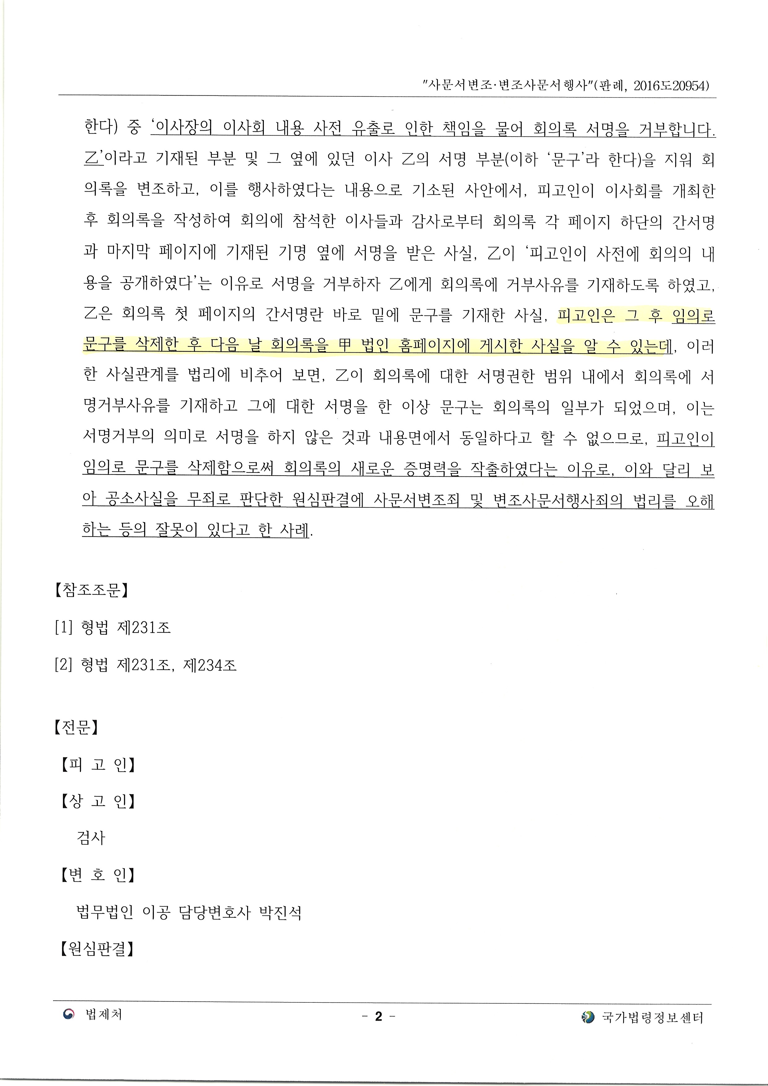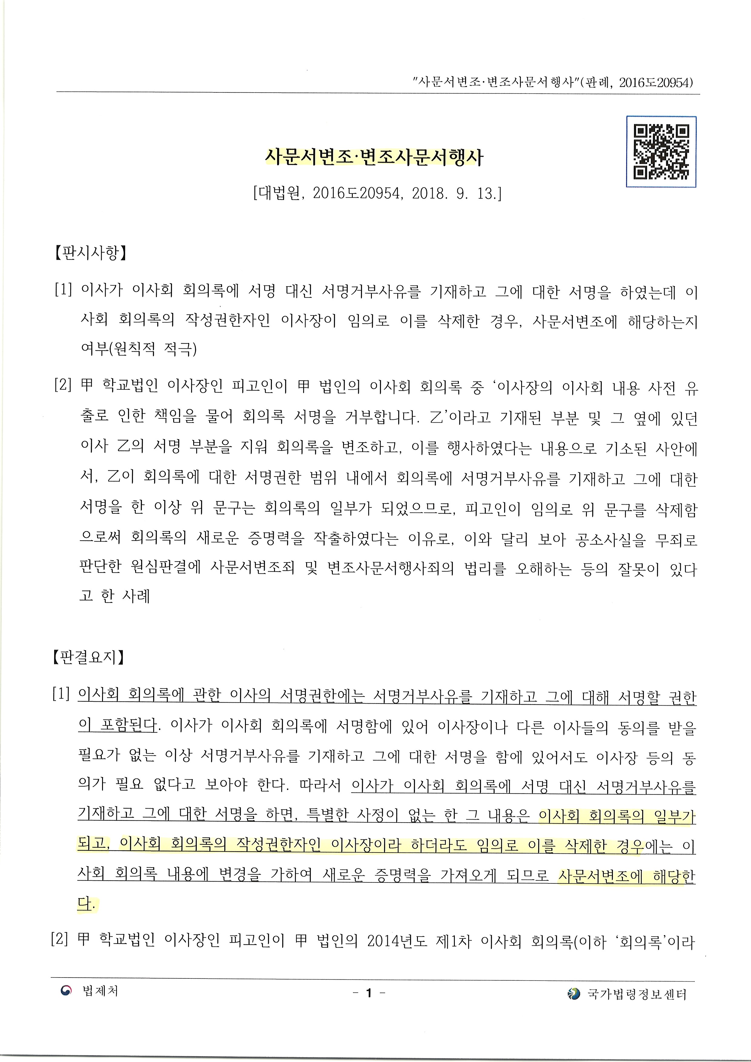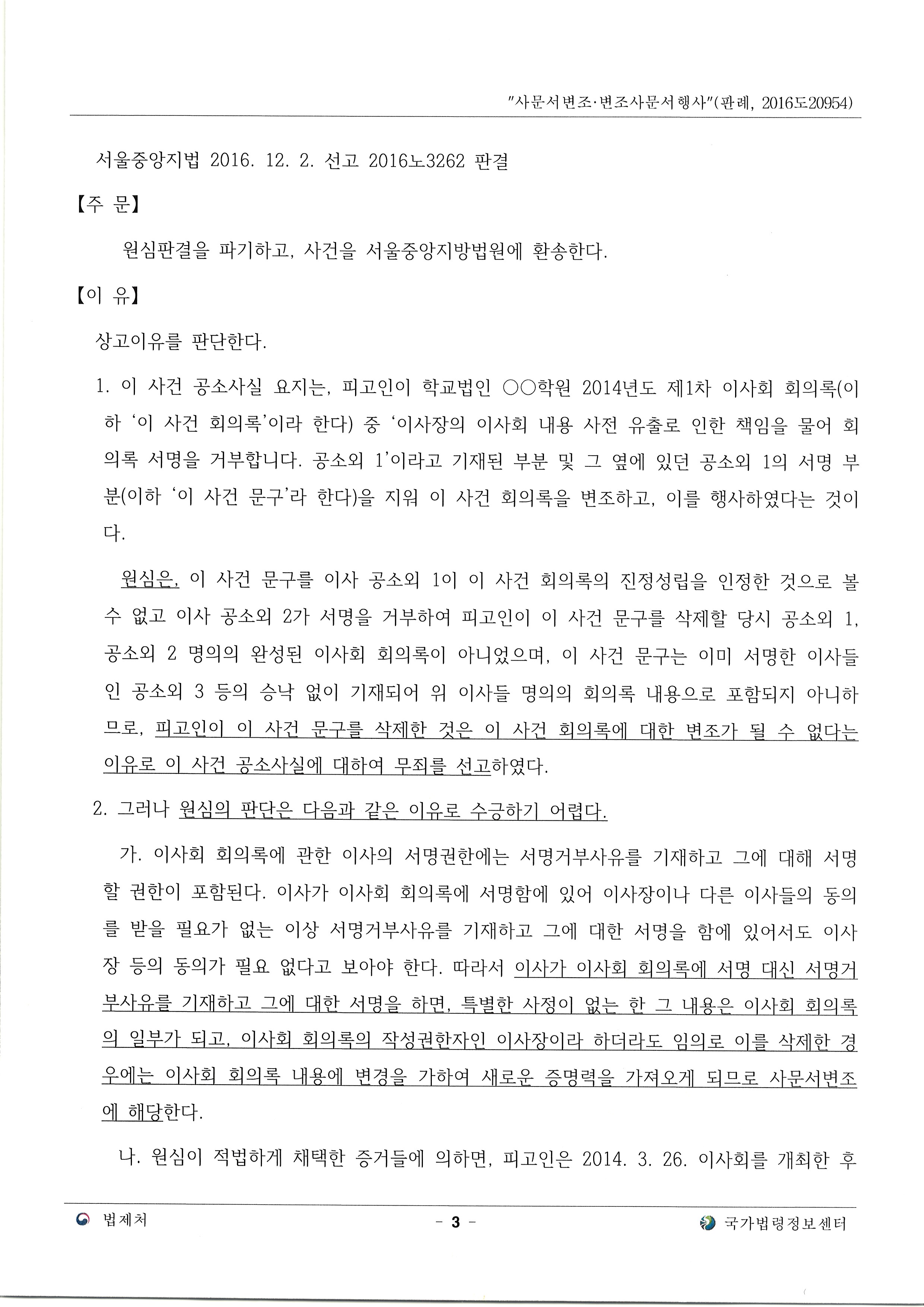 회의록 가리고 복사하여 행사할 경우 - 사문서변조죄 및 변조사문서행사죄? 작성자비빔밥|작성시간24.05.06|조회수45 목록 댓글 0 글자크기 작게가 글자크기 크게가 회의록 내용의 일부를 가리거나 삭제하여 행사(법원 판결에 따른 문서공개)하였다면 아래 판례가 지적한 사문서변조죄 및 변조사문서행사죄에 해당할 것으로 보임 다음검색 현재 게시글 추가 기능 열기 북마크 공유하기 신고 센터로 신고 댓글 댓글 0 댓글쓰기 답글쓰기 댓글 리스트