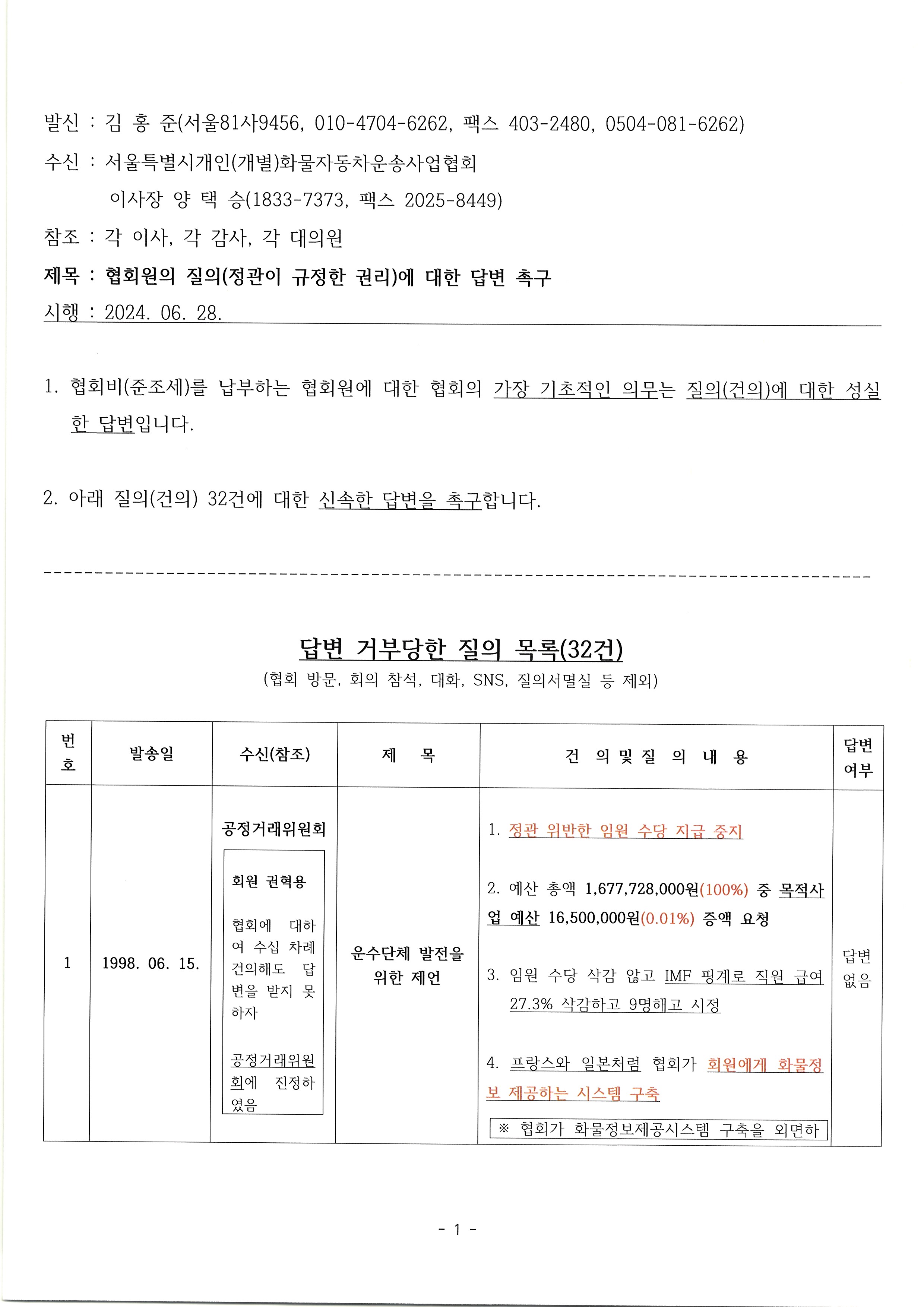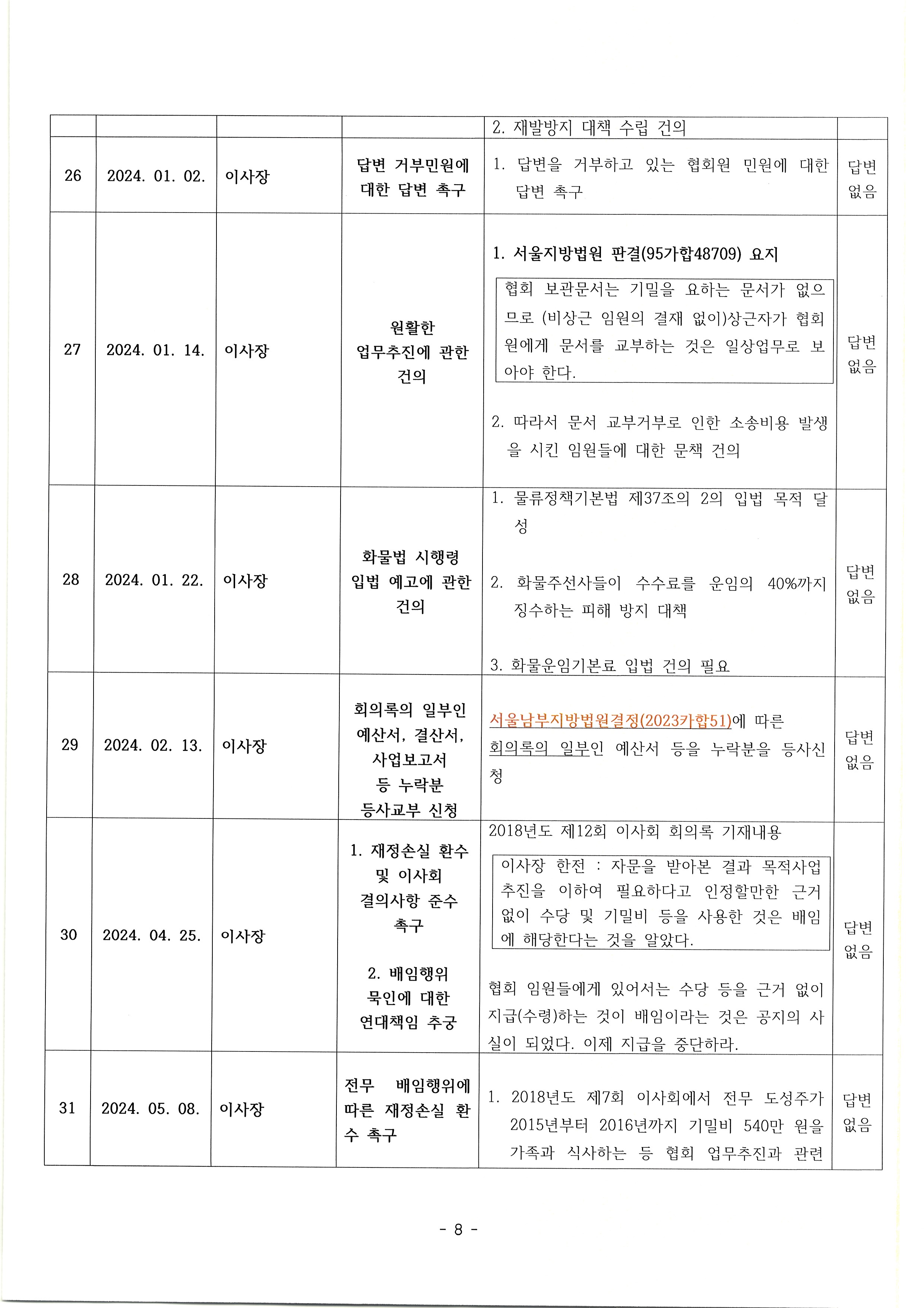 서울개별협회 - 협회원에 대한 기초적인 의무이행 촉구 작성자비빔밥|작성시간24.06.28|조회수59 목록 댓글 0 글자크기 작게가 글자크기 크게가 다음검색 현재 게시글 추가 기능 열기 북마크 공유하기 신고 센터로 신고 댓글 댓글 0 댓글쓰기 답글쓰기 댓글 리스트