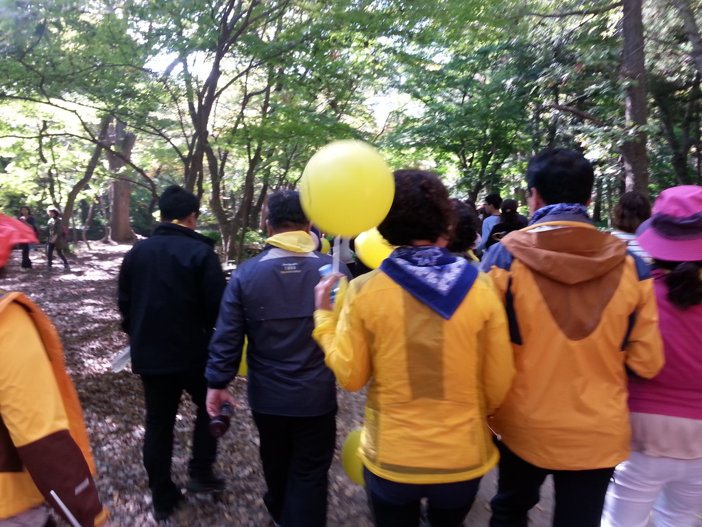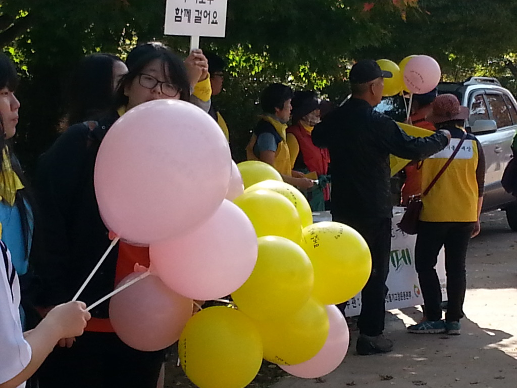 피켓과 오색찬란한 홍보풍선과 함께 본부요원들과 봉사요원의 홍보책자를 나누어주며 출발했다,
