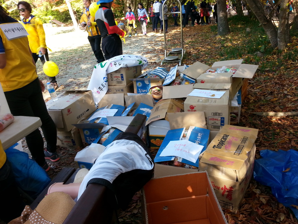 반환점에서는 마련된 경품권 추첨함에 접수하면서 받은 티켓을 넣고 준비한 물 음료수 과자