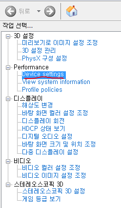 창이 하나 뜨는데, 아래처럼 Performance 탭을 키고 Device setting을 클릭해주세요.