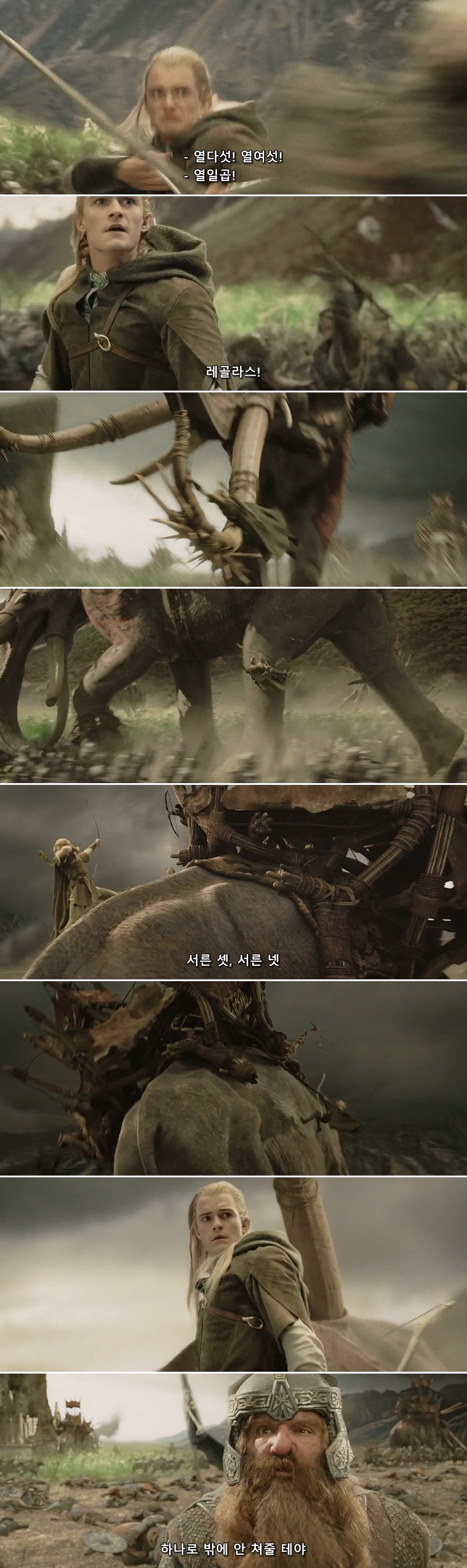 커다란 코끼리 올리펀트를 혼자서 제압한 레골라스.