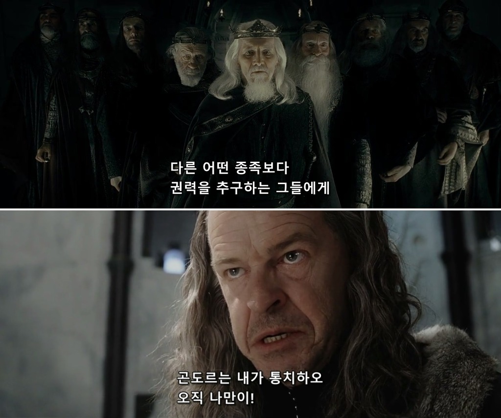 그 설명에 걸맞게 반지의제왕에 나오는 인간들은 정말 쉽게 타락합니다.(현실에서도 마찬가지지만)