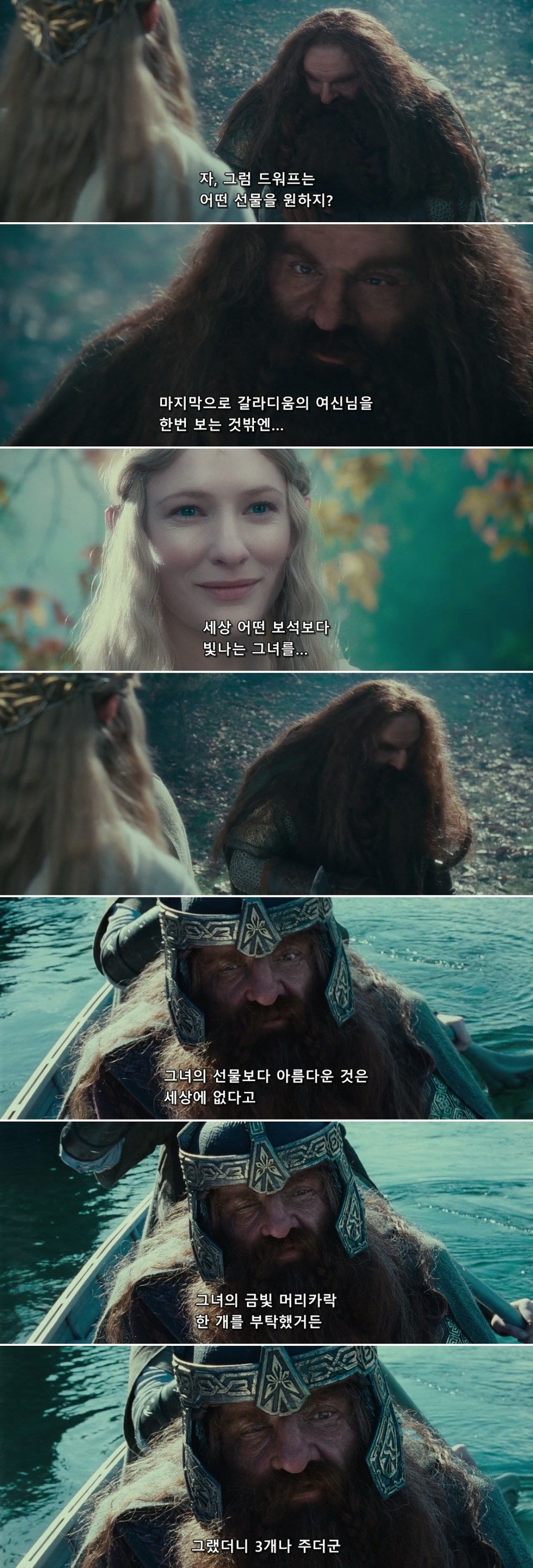 엘프여왕 갈라드리아는 난쟁이에게도 선물을 주는데요.