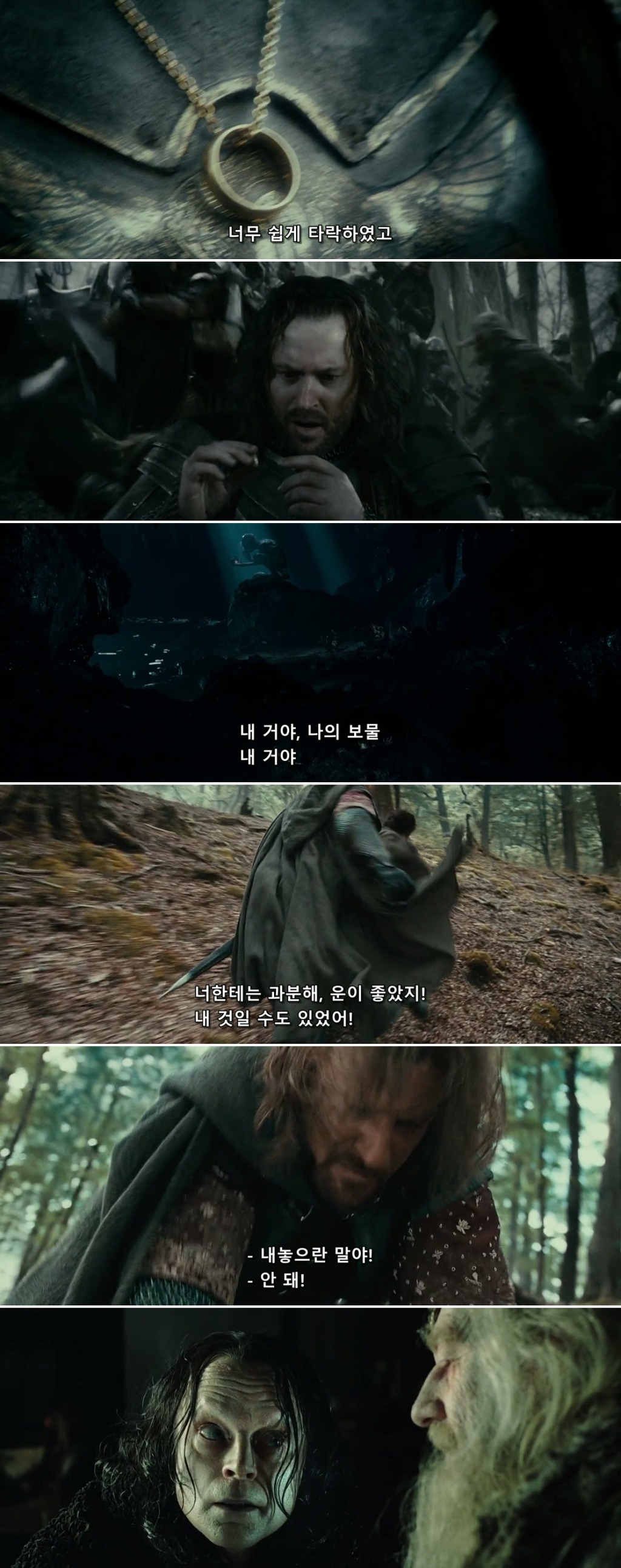 프로도가 반지를 주겠다고하자. 금방 탐욕에 사로잡혀버립니다.
