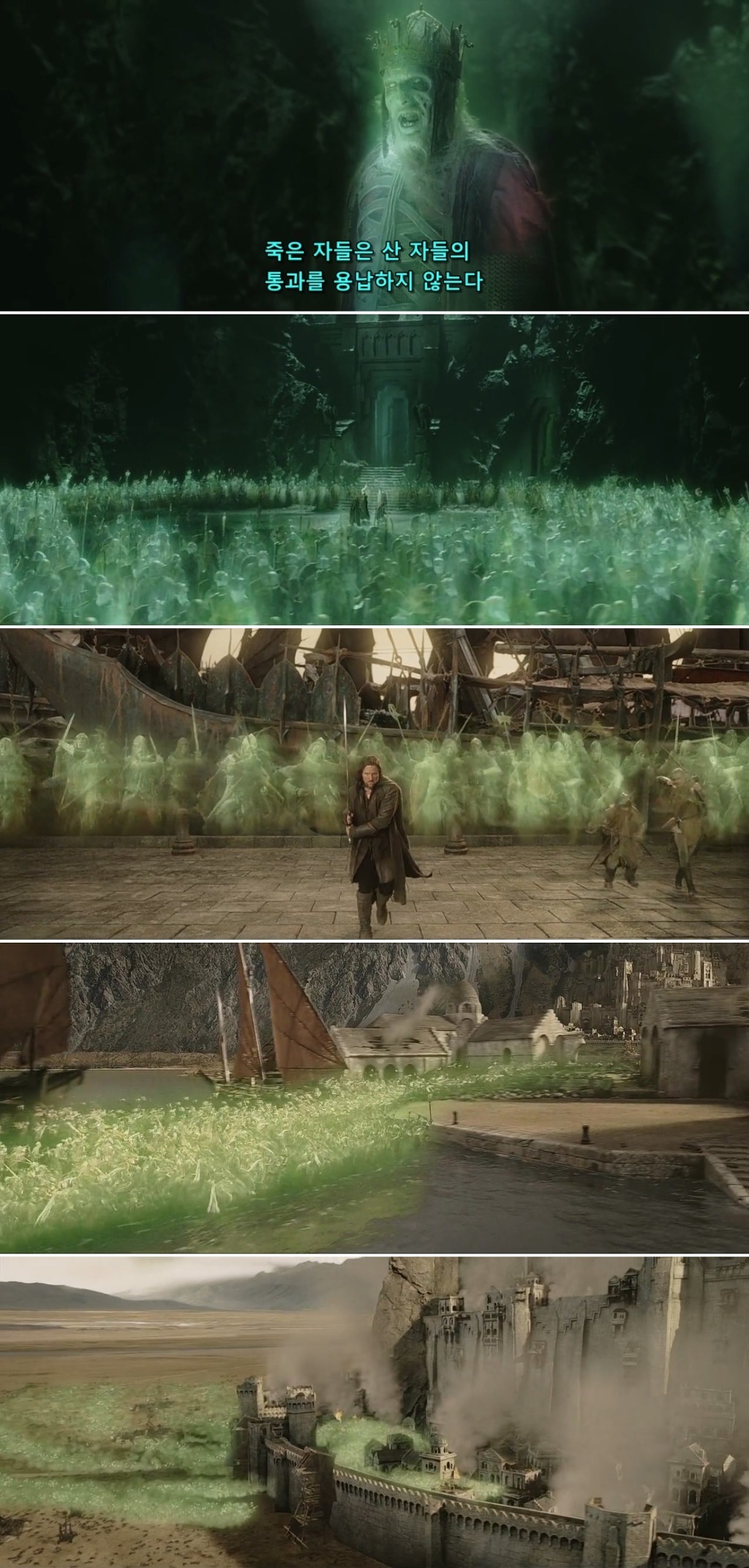 아라곤은 유령들의 저주를 풀어주고, 안식에 처하도록 해줍니다.