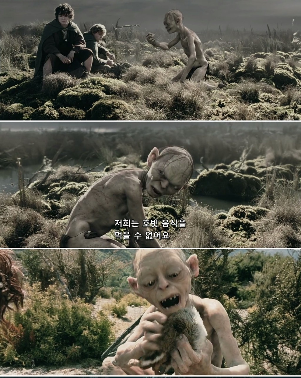 심지어 골룸은 호빗의 흉내는 커녕, 호빗의 음식도 먹지 못합니다.