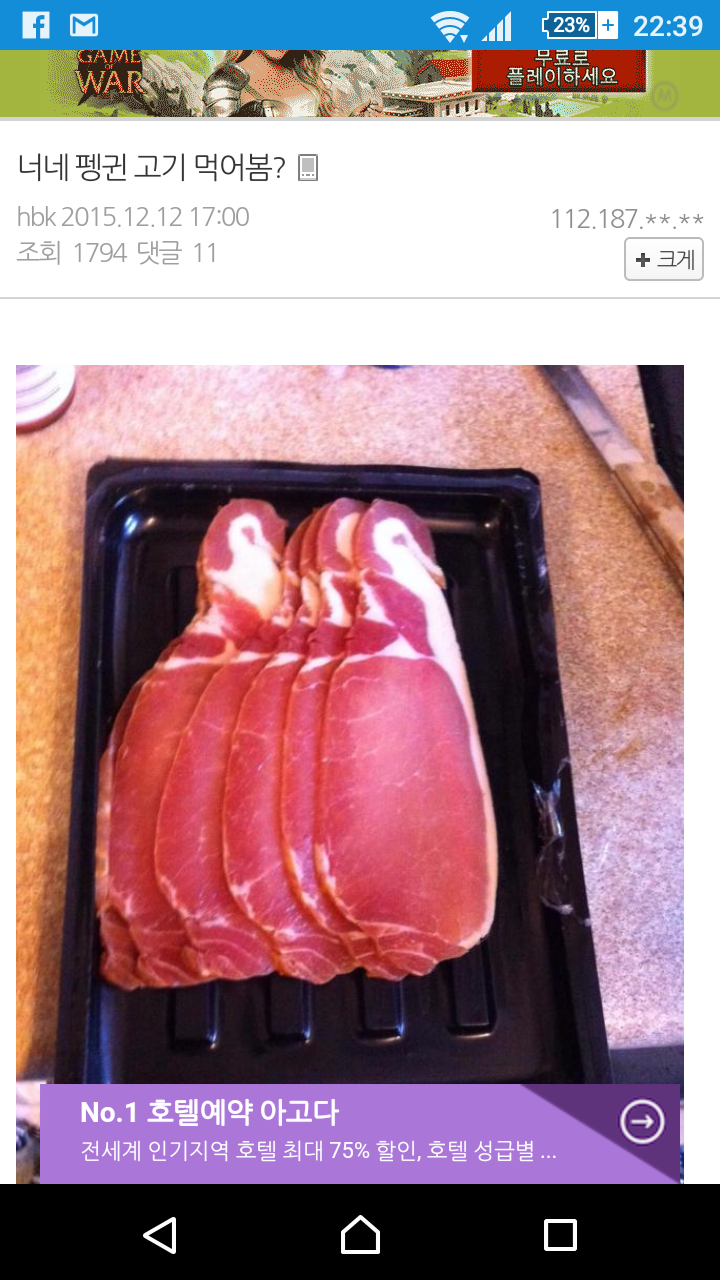 [스크랩] [유머]펭귄 고기 먹어봄? 작성자피칙|작성시간15.12.13|조회수11,573 목록 댓글 16 글자크기 작게가 글자크기 크게가 ㅋ 다음검색 스크랩 원문 : 클링 (CleanG) 현재 게시글 추가 기능 열기 북마크 공유하기 신고 센터로 신고 댓글 댓글 16 댓글쓰기 답글쓰기 댓글 리스트 답댓글 작성자바드럽 | 작성시간 15.12.13 온나 답댓글 작성자Zeus(제우스)-직업:신 | 작성시간 15.12.13 신의 품으로 오라. 답댓글 작성자백멍이 | 작성시간 15.12.14 얘들아 3년 동안 수고했고 다음에 웃으면서 보자^^ 작성자꼬깡아지 | 작성시간 15.12.13 ㅋㅋㅋㅋㅋㅋ 펭귄고깈ㅋㅋㅋㅋㅋㅋ 작성자배달의달인 | 작성시간 15.12.13 ???: 저기 펭귄이 있군요. 좋은 단백질 공급원이죠. 이미지 확대 댓글 전체보기