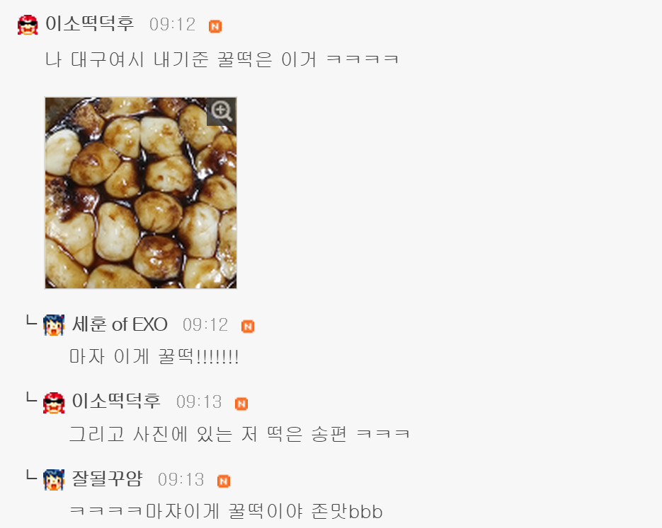 피씨카톡이 렉걸려서 안 뜨는데 저기 사진은 바로 꿀떡인데