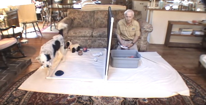 예를 들어 견주인 존 필리가 서로 다른 장난감들을 뿌려놓고