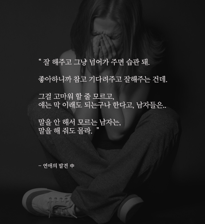 그래서 혼자 울어요. 우린 끝났는데, 우린 헤어졌는데, 자꾸만 사랑했던 기억들만 떠올라요.