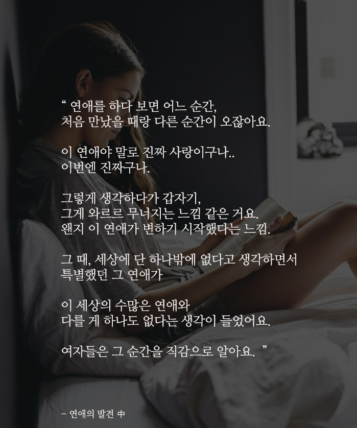 작성자문에릭 작성시간 16.05.20 역시 연애의 발견♡ 작가님 대사 진짜 너무 좋아요ㅠㅠ