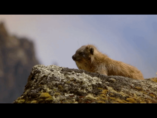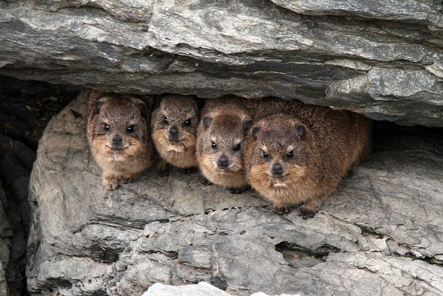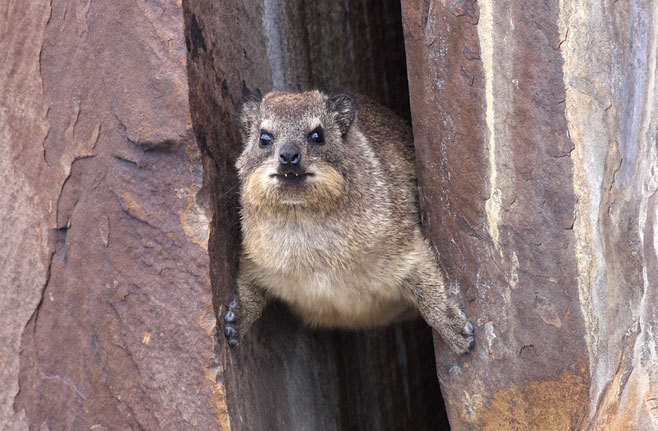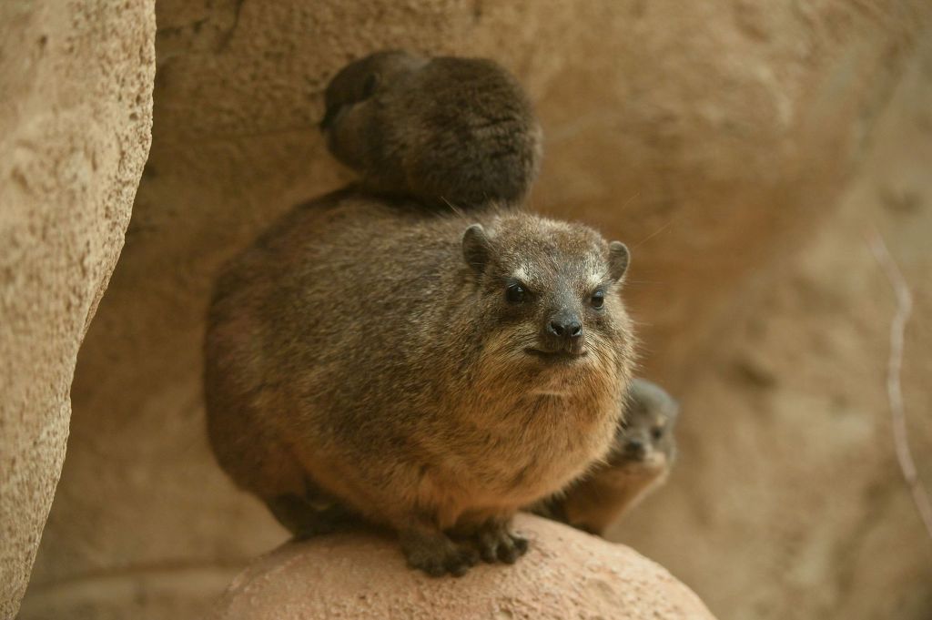 코끼리랑 유전적으로 아주 가까운 친척이라는 바위 너구리(Rock hyrax)입니다~