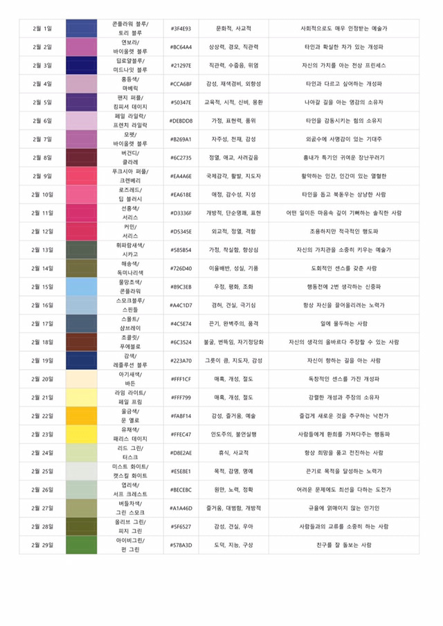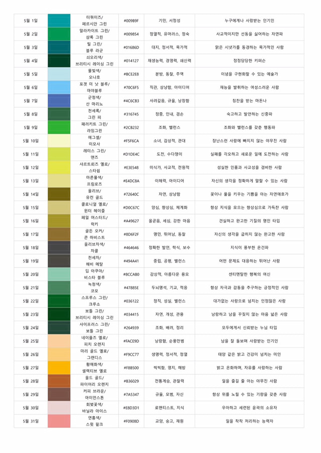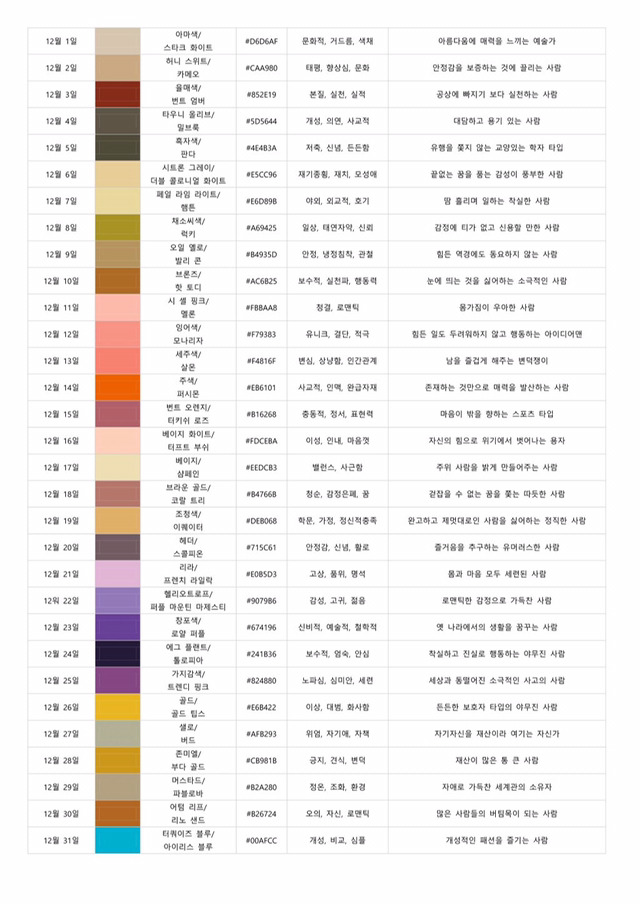 [캡쳐]탄생색으로 보는 성격 1~12월.twt 작성자피칙|작성시간16.09.04|조회수10,847 목록 댓글 41 글자크기 작게가 글자크기 크게가 출처https://twitter.com/maze_saniwa/status/722272587976343552 다음검색 현재 게시글 추가 기능 열기 북마크 공유하기 신고 센터로 신고 댓글 댓글 41 댓글쓰기 답글쓰기 댓글 리스트 답댓글 작성자이사건은내가맡죠 | 작성시간 16.09.05 강한의지의 아이콘이라니..ㅋ난 의지박약의 아이콘이여 이사람아 ㅋㅋㅋ 작성자드래곤본 | 작성시간 16.09.05 감정을 숨긴 정열가..대체 무슨 감정을.. 작성자U2 & GREEN DAY | 작성시간 16.09.05 모성애?? 작성자인어의 노래 | 작성시간 16.09.05 엌ㅋㅋㅋㅋㅋㅋㅋㅋㅋ묘하게 맞는거같기도 하고ㅎㅎ색깔이 예뻐서 좋네요ㅠㅠ! 작성자매력학과과대 | 작성시간 16.09.10 힘든역경에도 동요하지않아요!! 댓글 전체보기