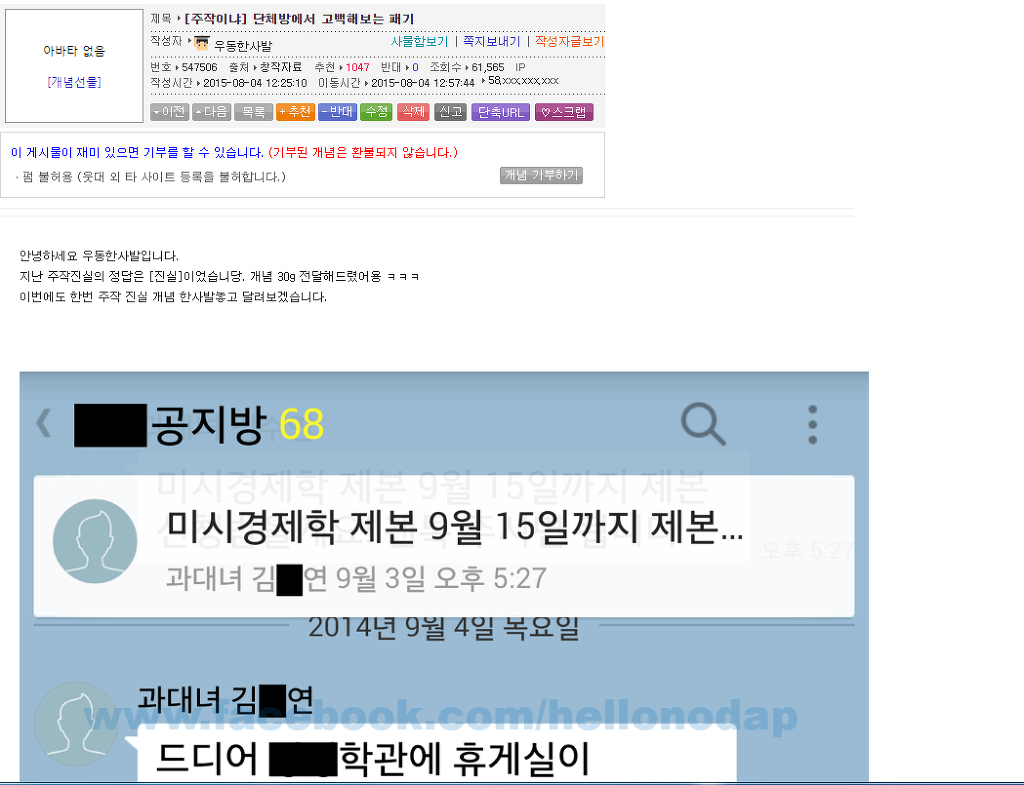 답댓글 작성자삶지교부교주 작성시간 16.11.01 단톡방에서 과대인지 누군가에게 누가 공개고백