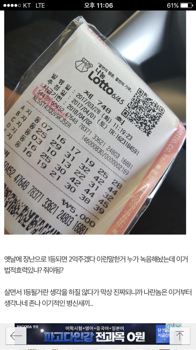 작성자호옹이옹 작성시간 17.10.25 1등당첨되면 일단 숨길거같은데. . .뭐저런데 글을 올리지??