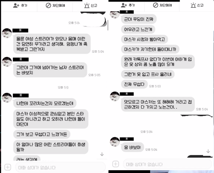 스트리머 H양: 푸딩님, 방송 좆되게 해드려요? 제가 일부러 안그러는거에요. 푸딩님 방송 못하게 해드려요?