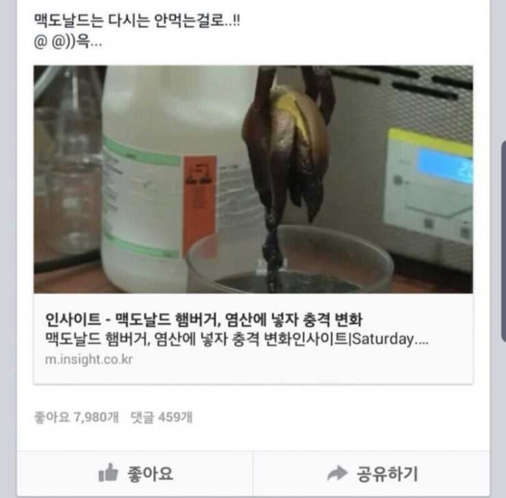 [스크랩] [사진]맥도날드는 다시는 안먹는걸로 윽... 작성자초아요♥|작성시간19.08.28|조회수10,050 목록 댓글 24 글자크기 작게가 글자크기 크게가 버티는게 더 이상한거 아닌가ㅋㅋㅋㅋㅊㅊ웃대 다음검색 스크랩 원문 : 樂 SOCCER 현재 게시글 추가 기능 열기 북마크 공유하기 신고 센터로 신고 댓글 댓글 24 댓글쓰기 답글쓰기 댓글 리스트 작성자킴티쥐 | 작성시간 19.08.28 집에서 엄마가해준밥도 염산에넣으면 저리되는데 뭔소리지저건....?? 작성자호빵찐빵 | 작성시간 19.08.28 염산ㅋㅋㅋㅋㅋㅋㅋㅋㅋㅋㅋㅋㅋㅋㅋㅋㅋㅋㅋㅋㅋ 작성자백야3.98 | 작성시간 19.08.28 다행이야 변해서... 작성자핫-치킨풋 | 작성시간 19.08.29 안 변했으면 안먹었을거 같은데 작성자Is Real | 작성시간 19.08.29 넣어서 멀쩡한걸 걸러야하는거 아니냐 ㅋㅋㅋㅋㅋㅋㅋ 댓글 전체보기