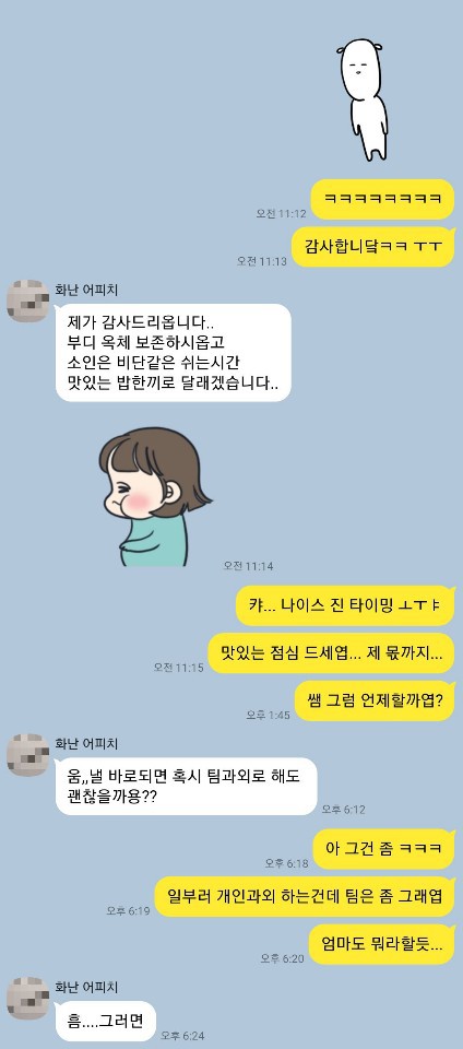 그래도 선생님이니까 위에 이모티콘을 보낸 카톡처럼