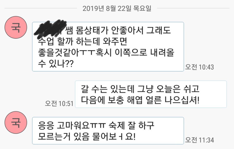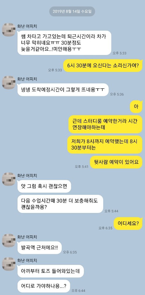 과외: 쌤 수원에서 왔어 3시간 일찍 출발했어