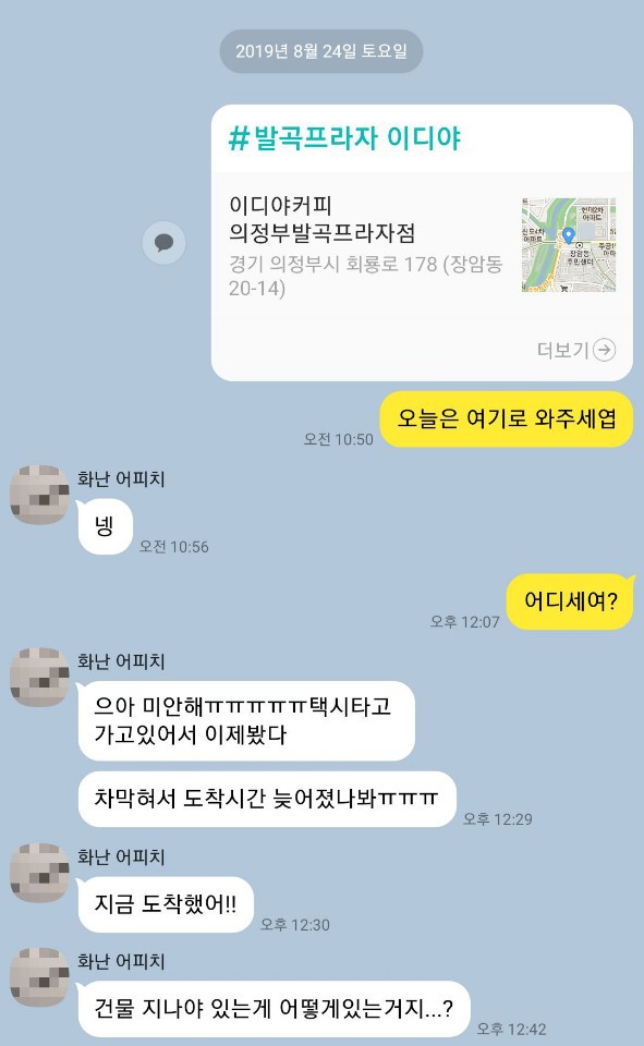 스터디룸은 제가 문을 열어드려야 해서 6시 44분에 도착하셔서 제게 연락을 하셨고
