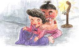 그날 밤, 도깨비는 또 과부를 찾아왔어.