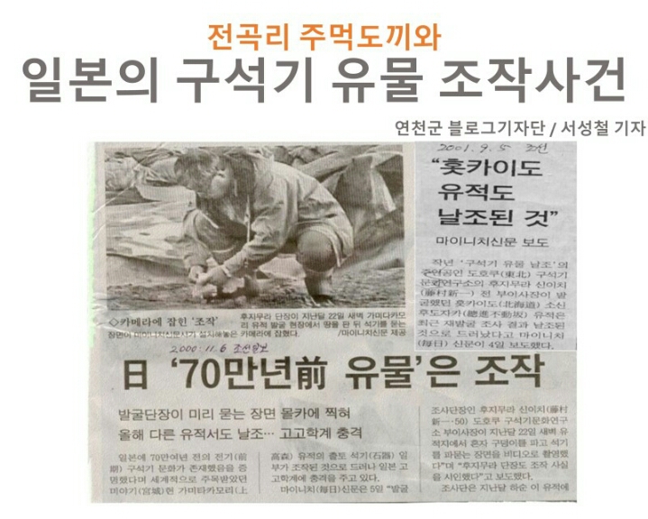 일본은 한국의 연천군 전곡리에서 전기구석기 유물이 발견되자 일본 전기구석기 시대에 대한 열등감과 강박에 빠져들었습니다.