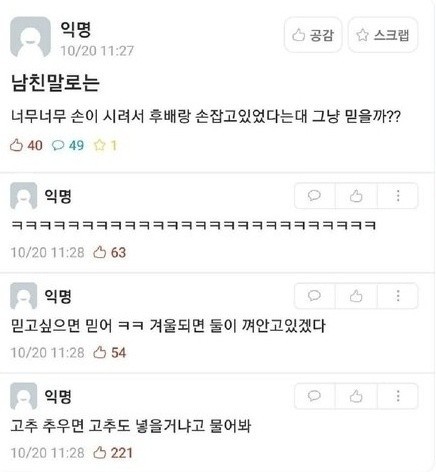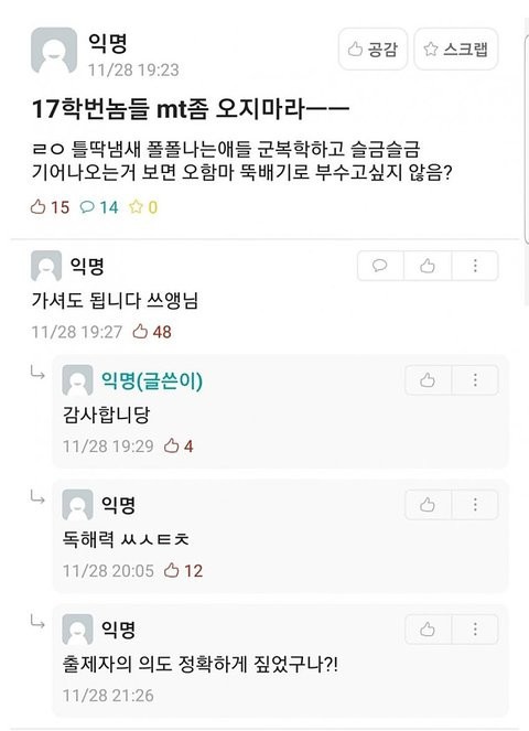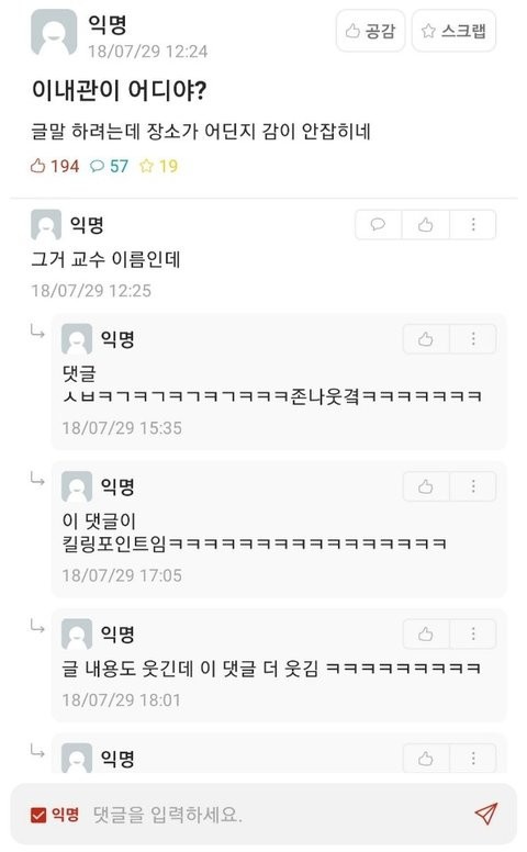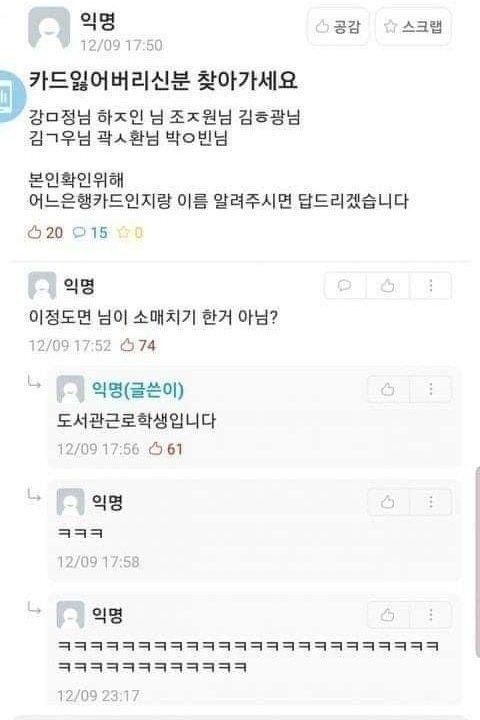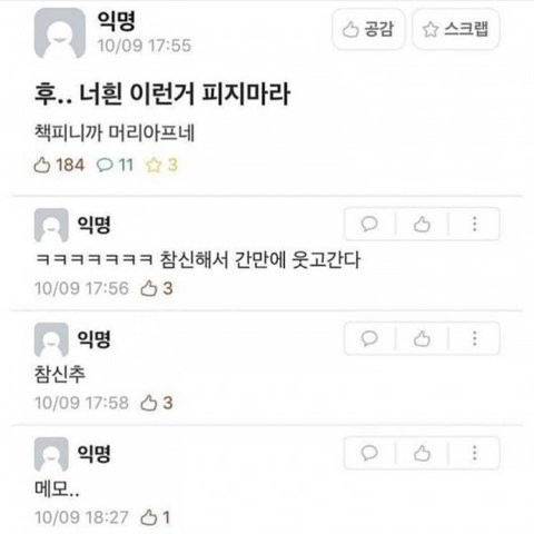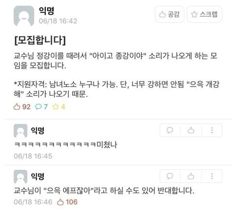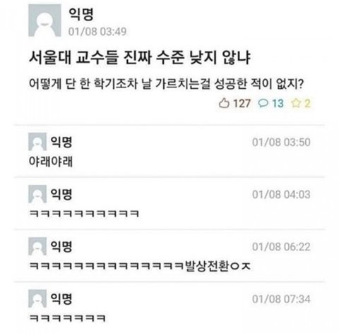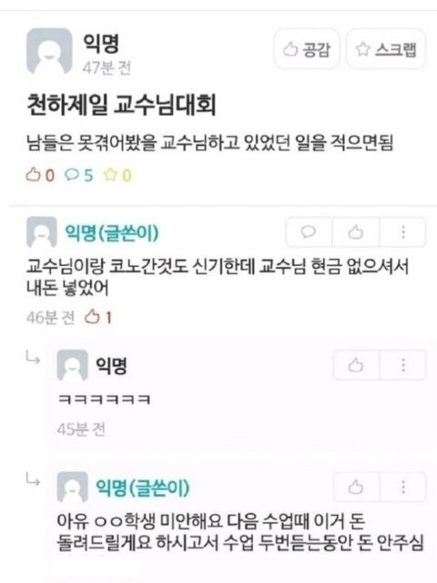 [스크랩] [사진][스압] 정신나간 대학 에타 레전드 모음 작성자화력발전소|작성시간20.01.14|조회수10,539 목록 댓글 18 글자크기 작게가 글자크기 크게가 * 업로더 유의사항 : 정치, 성혐오, 광고, 분쟁성, 어그로 게시물작성 금지* 댓글러 유의사항 : 정치, 성혐오, 광고, 분쟁성, 어그로 댓글작성 금지 다음검색 스크랩 원문 : 도탁스 (DOTAX) 현재 게시글 추가 기능 열기 북마크 공유하기 신고 센터로 신고 댓글 댓글 18 댓글쓰기 답글쓰기 댓글 리스트 작성자일라이 클락 | 작성시간 20.01.14 밖에서 포커페이스로 볼수가 없음ㅋㅋㅋㅋㅋㅋㅋㅋㅋㅋㅋㅋㅋㅋㅋㅋㅋ 작성자니네누나 | 작성시간 20.01.15 ㄱㅋㅋㅋㅋㅋㅋㅋㅋㄱㅋ 작성자위 베어 베어스 | 작성시간 20.01.15 ㅋㅋㅋㅋㅋㅋㅋㅋ 작성자건강맨날하고 | 작성시간 20.01.15 필통ㅋㅋㅋㅋㅋㅋㅋ첨본것도 아닌데 개터졌어욬ㅋㅋㅋㅋㅋㅋㅋㅋㅋㅋ 작성자허공을 떠도는 작은 먼지처럼 | 작성시간 20.01.15 하 진짜 다웃겨ㅋㅋㅋㅋㅋㅋㅋㅋㅋㅋㅋㅋㅋㅋㅋㅋㅋㅋㅋㅋㅋㅋㅋㅋ 댓글 전체보기