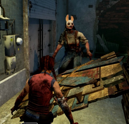 그리고 살인마는 판자를 발로 차서 부셔야 통과할수 있는데 그 시간이 오래걸려서 그 사이에 도망칠수 있어