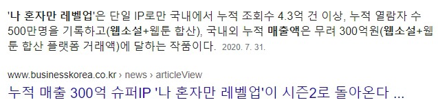 제목은 《나 혼자만 레벨업》