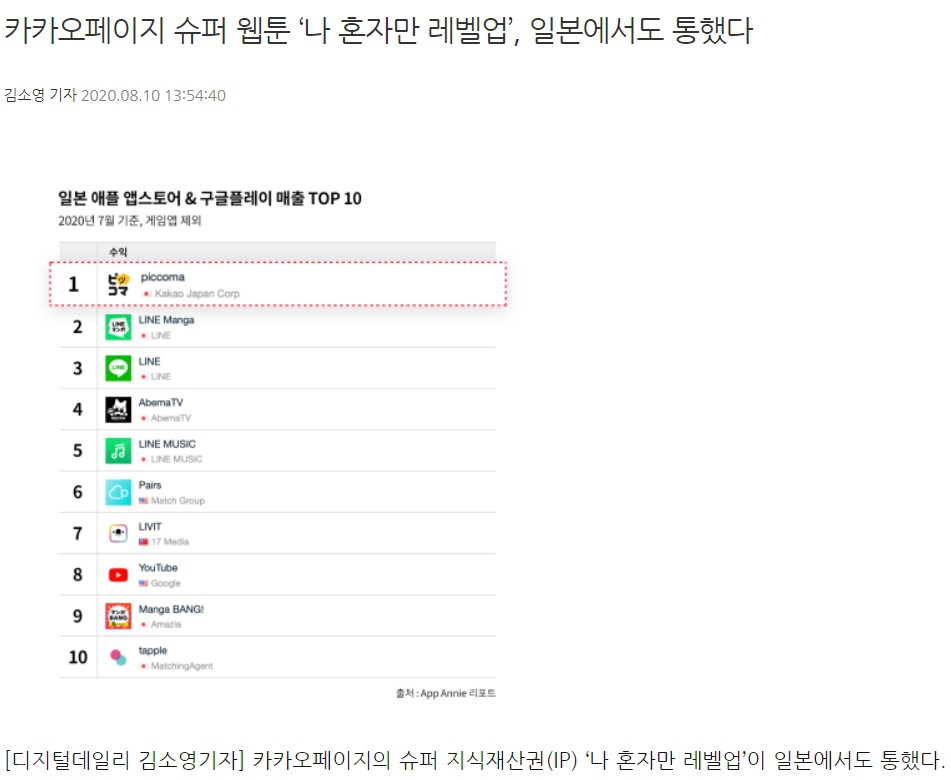 카카오페이지 웹툰 순위 1위행.