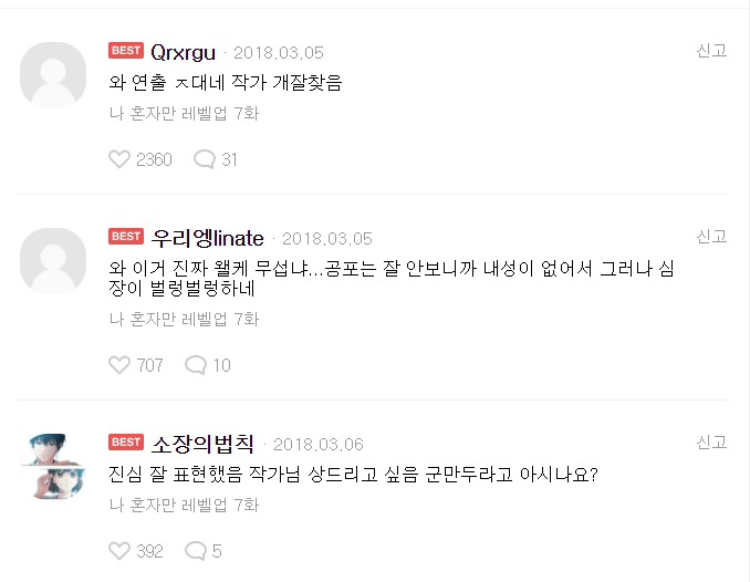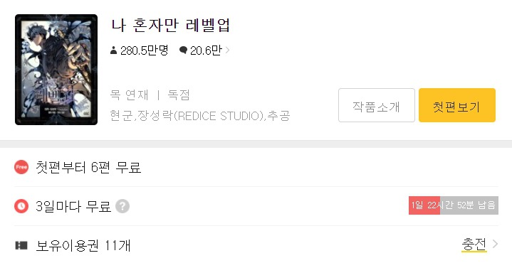작성자안나 아렌델 작성시간 20.09.18 넘넘 재밌어요 ㅋㅋㅋㅋㅋㅋ 캐시 생길때마다 무조건 나혼렙부터 삼ㅋㅋㅋㅋ