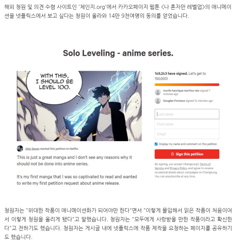 해외에서는 '넷플릭스 애니화' 청원까지 등장.