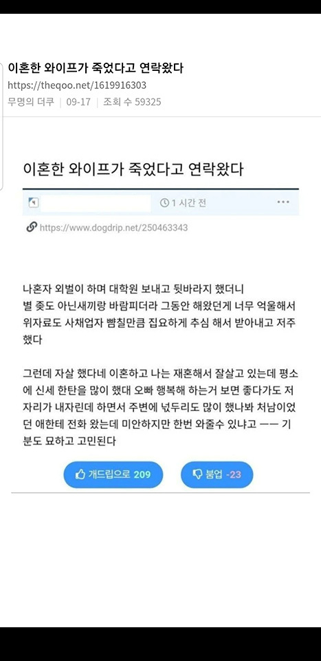 작성자겨울은 가고 여름은 오지마 작성시간 20.09.21 아 내일도 아닌데 맘이 왜케 안좋지.... 진짜 큰 잘못한거지만 그 대가는 이혼하고 괴롭게 살면서 후회한거 그정도 아닌가 싶다.... 목숨까지 버렸다는데 그것도 자기죄지뭐 라고 할만큼 나는 그렇게 딱 선그을 수가 없을듯...
