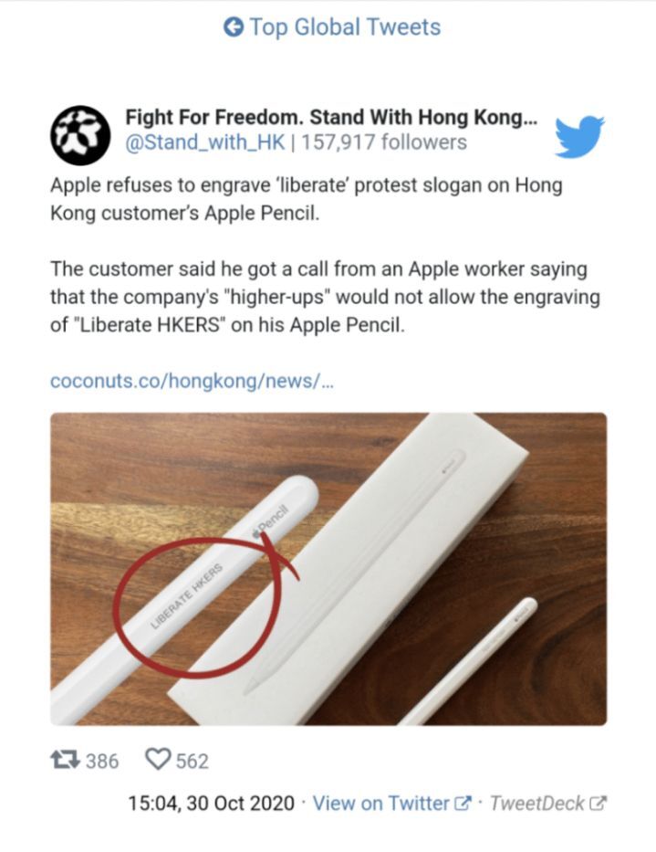 홍콩의 한 소비자가 Liberate HKERS