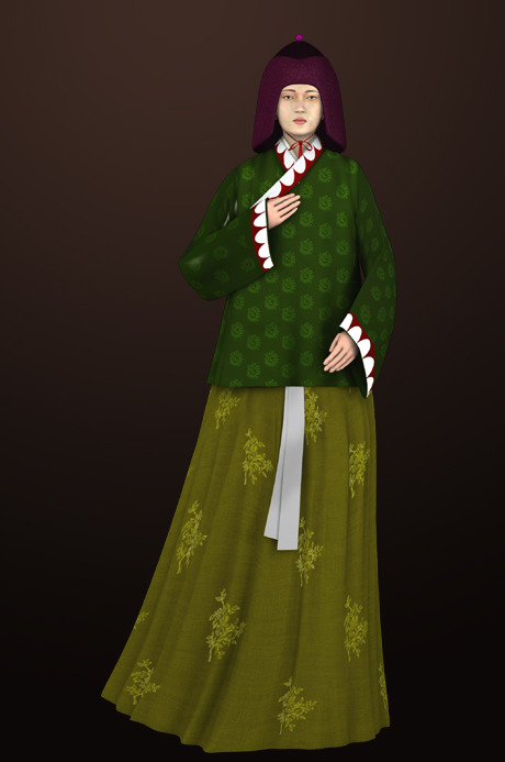 배경: 고려도경에 보면 귀부인들은 머리의 쓰개로서 몽수를 쓰고 다녔는데 그것은 1폭의 길이가 8자나 되는 검은 비단 3폭으로 만들며 이것을 머리위에서 드리워 얼굴만 내놓고 나머지는 땅에 끌리게 하고 다녔다고 한다. 일면 개두라구 한다.선군이란 속치마의 일종으로 치마폭을 넓게 하기위한 것이었으며 조선시대의 무지기치마 같은 것이었다. 따라 이 선군 위에 입는 겉치마는 8폭에 길이가 꽤 길어서 걸을 때 겨드랑이에 끼고 다녔다고 하는데 부귀한 집의 부인은 치마 한벌 만드는 데 옷감을 7~8필이나 소요되었다고 한다. 몽고복식의 영향으로 고려 상류층 귀부인도 몽고상류층의 영향을 직접적으로 받아 이와같은복식을 입게 된 것이다.