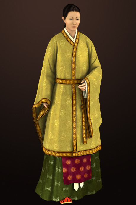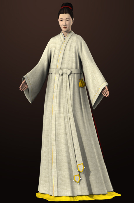 고려도경 근거 사녀복식 백색모시 장의, 황견(黃絹) 치마 착용