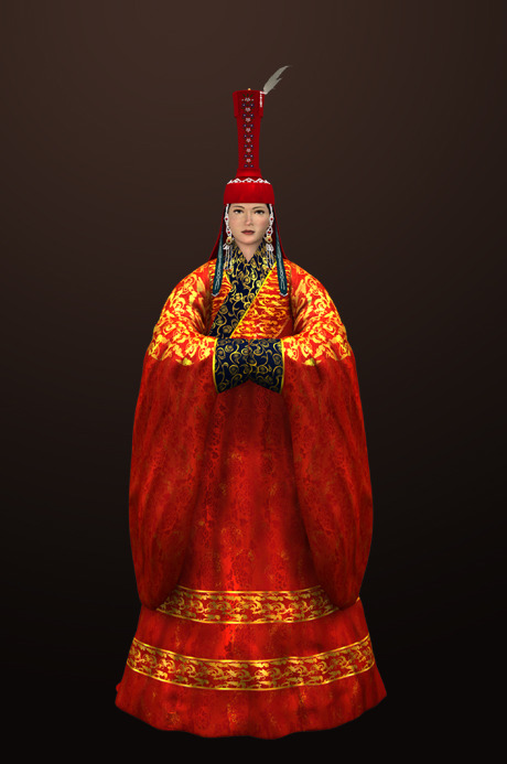 옷해설:고고관은 전형적인 몽고 복식임에도 불구하고 고려 상류 사회가 몽고복식을 전적으로 수용할 수 밖에 없었기 때문에 고려왕비(高麗王妃)가 제사 지낼때도 원나라 상류층에서 입었던 고고관을 착용하게 된 것이다.