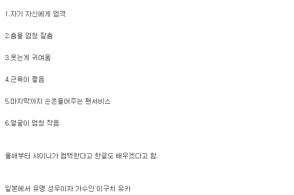[기타]일본 인기 성우 이구치 유카가 밝힌 샤이니 민호를 좋아하는 이유.jpg 작성자에르딩|작성시간21.01.14|조회수3,961 목록 댓글 12 글자크기 작게가 글자크기 크게가 인정합니다 다음검색 현재 게시글 추가 기능 열기 북마크 공유하기 신고 센터로 신고 댓글 댓글 12 댓글쓰기 답글쓰기 댓글 리스트 작성자이 태 민 | 작성시간 21.01.15 기가막히게 생겼가 작성자루기아 | 작성시간 21.01.15 마이네임이즈 민호우 작성자계에란 | 작성시간 21.01.15 어떻게 저 작은 머리통에 저렇게 크고 뚜렷한 이목구비가 박혀있냐.. 작성자GRANRODEO | 작성시간 21.01.15 오우 저분 백금디스코 부른분 아니에요? 이쁘시당 작성자날깨우고가라 | 작성시간 21.01.15 완벽 댓글 전체보기