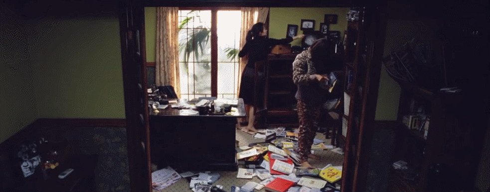백 선생의 집을 샅샅이 뒤지는 금자 씨.
