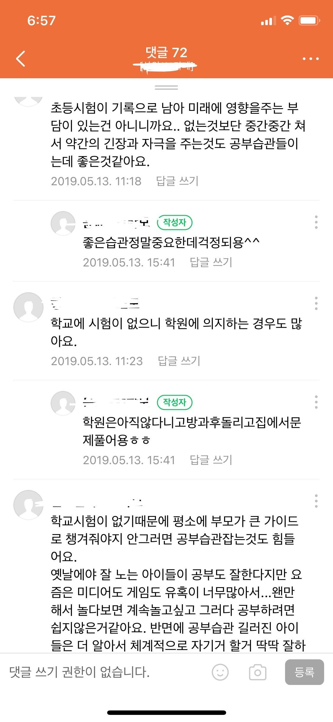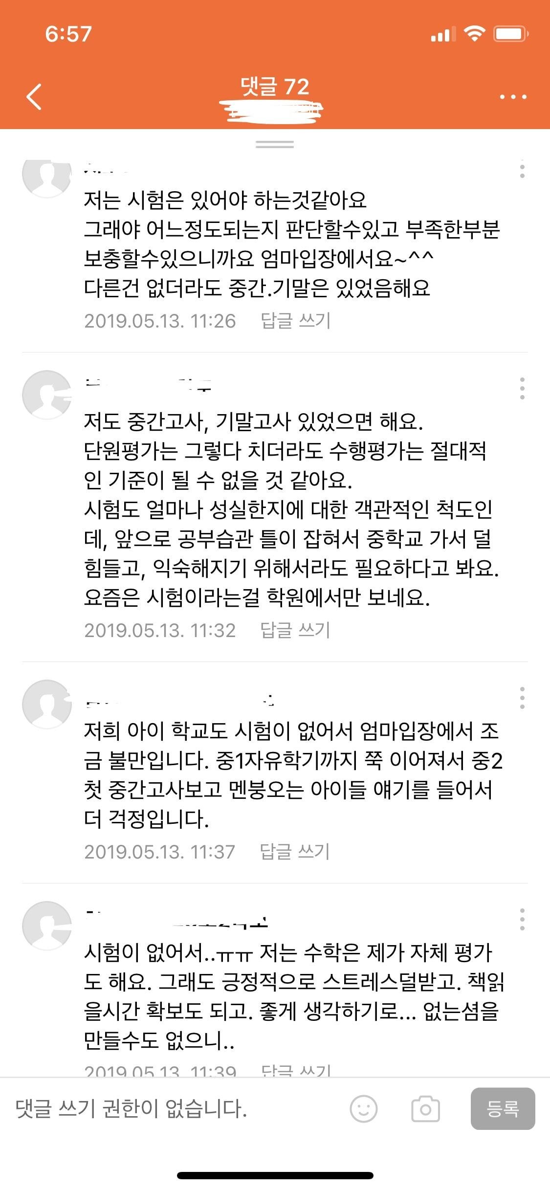 작성자정수빈31 작성시간 21.05.06 전 교사는 아니지만 중학교에 가서 특별수업으로 4시간정도 했던적이 있는데 애들 하는소리가 시험보는게 차라리 낫다고 하더라구요! 공부 진짜 잘하는거 아니면 시험이 없으니 공부도 더 안하게 된다고~ 차라리 시험이 있어야 억지로라도 공부한다고 하더라구요~