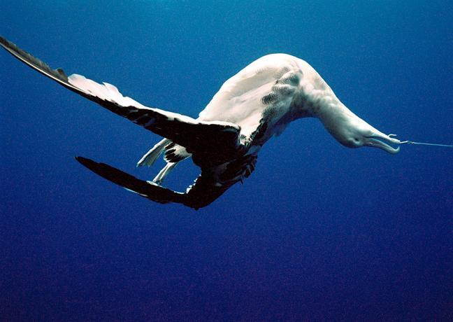 앨버트로스를 필두로 한 바닷새들 역시 부수 어획으로 고통받습니다. 돌고래처럼 그물에 딸려가지는 않지만 주낙의 미끼(하필 앨버트로스가 가장 좋아하는 먹이인 오징어입니다.)를 먹으려다 낚싯바늘에 걸려 죽는 경우가 많습니다. 이러한 방식으로 매년 10만마리의 새들이 목숨을 잃었습니다.