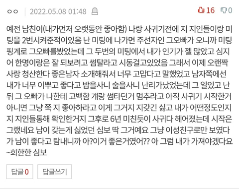 남사친도 딱 그얘길 함차 좋더라 하면서..ㅋ
